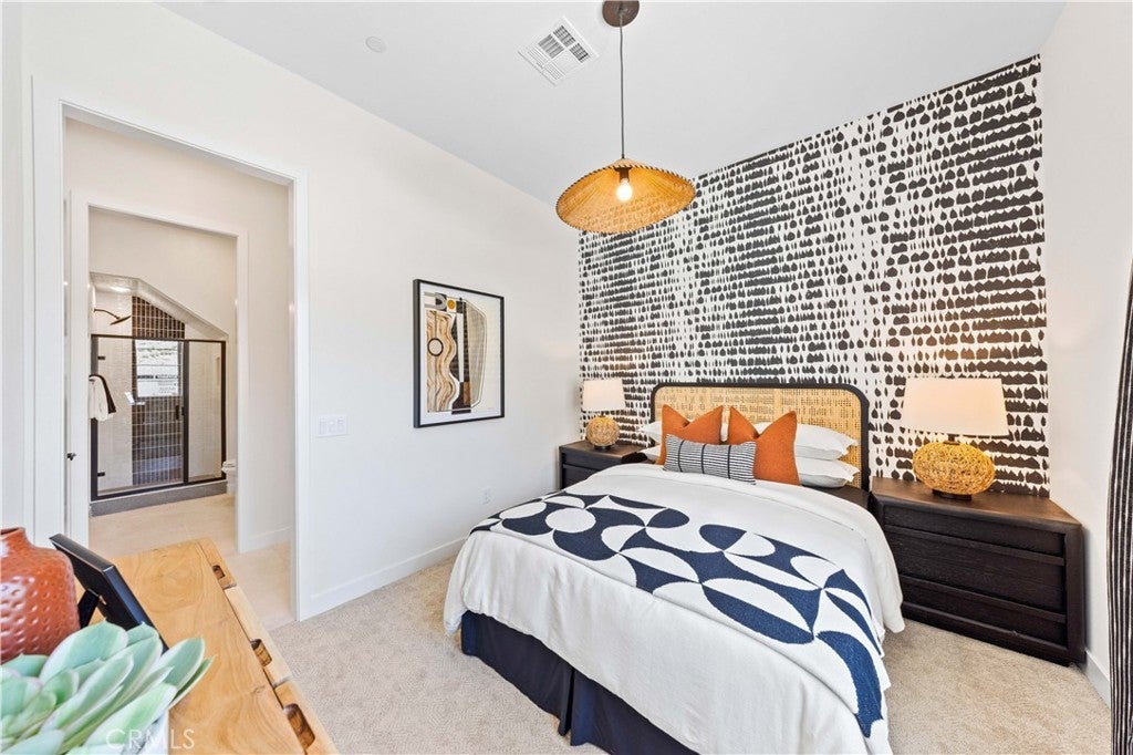 Discover this townhome in the exclusive “Felice” community, proudly situated within the highly acclaimed Walnut School District. Felice Plan 3 features 4-bedroom, 3-bath residence embodies architectural elegance, featuring classic tile accents, sandstone stucco, and an open-plan design highlighted by soaring nine-foot+ ceilings that create a spacious, light-filled ambiance. A convenient downstairs bedroom adds flexibility for guests or multigenerational living. The gourmet kitchen is designed for culinary enthusiasts, equipped with a high-quality gas range, dishwasher, shaker-style cabinets, and gleaming quartz countertops. The expansive primary suite boasts a walk-in closet and an ensuite bath with an oversized glass shower offering a spa-like retreat. Immerse yourself in Walnut’s vibrant lifestyle, complete with 30 miles of hiking trails, outdoor concerts, art centers, and year-round festivals. This prime location is just minutes from top-rated local schools, Mt. San Antonio College, and California State Polytechnic University. Easy access to major freeways (10, 60, 605, and 57) ensures convenient commuting to Los Angeles, Orange County, and beyond. Nestled within the prestigious Walnut School District, this property promises a unique blend of luxury, comfort, and premier education.