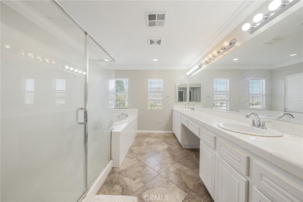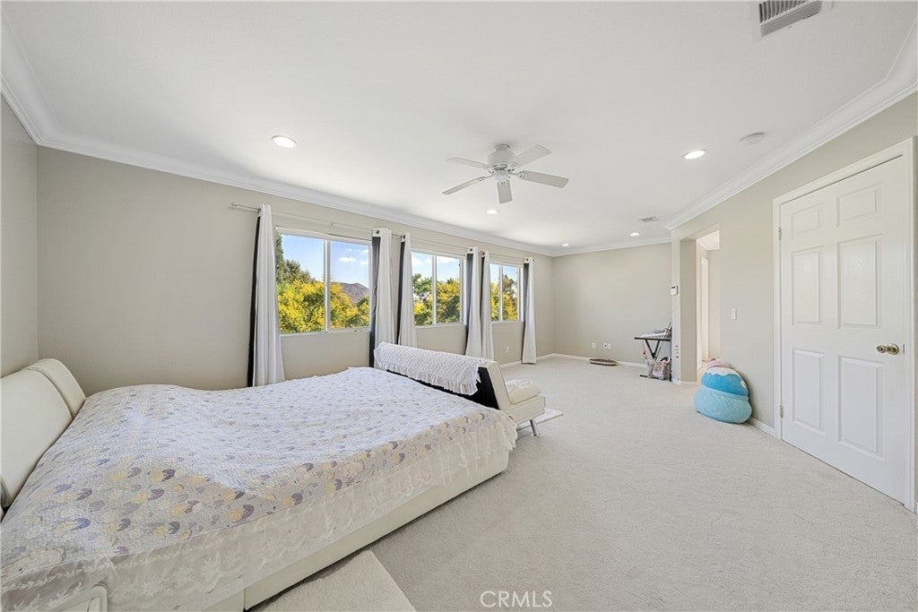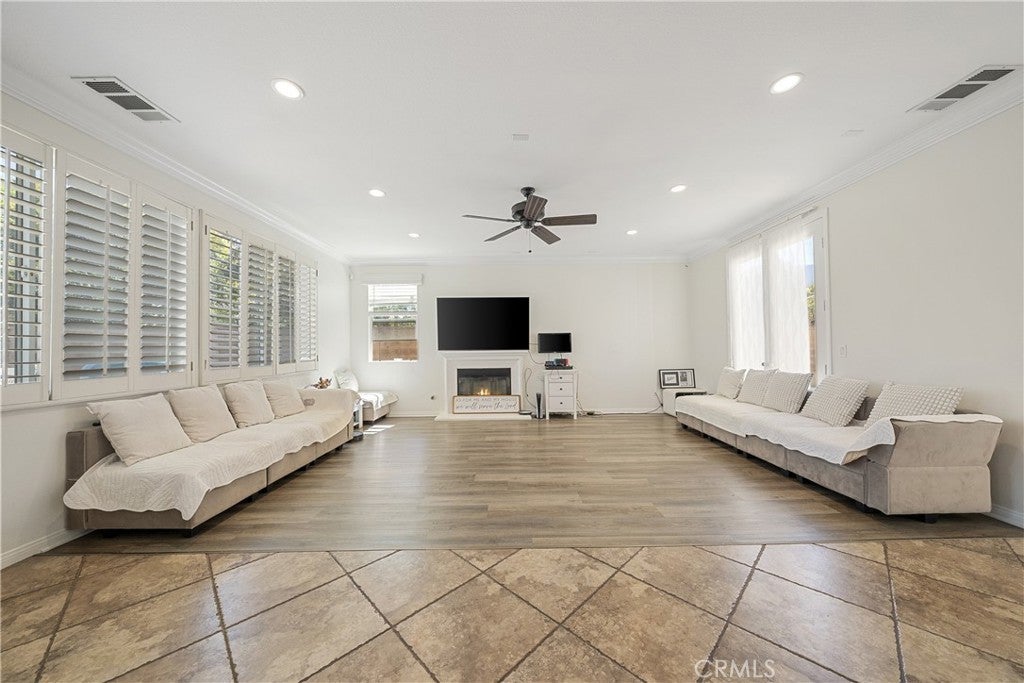 This beautiful home is a 3484 sqft 5 bedrooms and 3.5 bathrooms,lot size 7405 sqft,Built in 2004,located in the Sycamore Creek community in Corona on a corner lot. Energy Efficient and soft water: Equipped with 27 solar panels producing over 1,000 watts monthly, significantly reducing electricity costs.TESLA charger and water softener in two car attached garage. Recent Upgrades: Entire home painted, new Laminated flooring on the first floor and new carpet upstairs three years ago. Entryway and kitchen boast elegant patterned tile flooring, combining durability with style. Recessed LED lighting and ceiling fans with lights are installed throughout. Inviting Living Spaces: A cozy fireplace creates a warm and elegant focal point in the living room. The gourmet kitchen features a center island, walk-in pantry, and a powerful range hood. Laundry room with sink and extra storage. Luxurious Bedrooms: Expansive primary suite includes a versatile bonus room (perfect for a home office, gym, or nursery), dual walk-in closets, and a spa-like bath with oversized soaking tub. An additional junior suite includes its own private bath, while two secondary bedrooms share a comfortable full bathroom. Versatile Loft: The upstairs loft is bright and spacious—ideal for a family game room, media lounge, or additional relaxation area. Excellent Schools: Located in a highly rated 8/10 school district; elementary school is just 0.6 miles away for convenient drop-off and pick-up. Generous Lot: 7,405 sq. ft. lot with beautifully landscaped front and back yards, including fruit trees such as fig. Corner lot ensures abundant natural light throughout the day. Wood plantation shutters provide both elegance and effective insulation. Prime Location: Nestled on a quiet street yet minutes away from shopping, dining, and Highway 15 for easy commuting. Resort-Style Amenities: Low HOA of only $85/month grants access to extensive community facilities: two large swimming pools, fitness center, sports fields (basketball, soccer, tennis, baseball), playgrounds with slides and swings, outdoor BBQ areas, as well as biking and hiking trails.