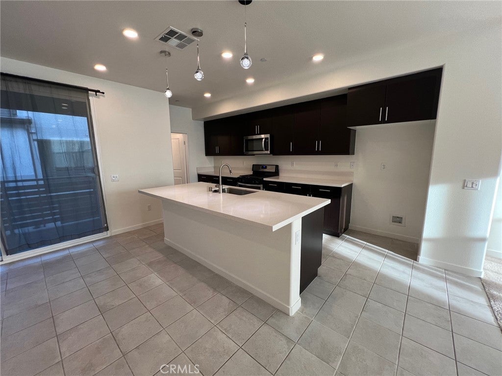 This 3-bedroom, 3-bathroom and 2 car attached garage Condo is now available. Tile and neutral carpet throughout. Open floor plan kitchen and living room. Kitchen has granite counter tops, center island and includes; stove-top/oven, microwave and dishwasher appliances. Dining room area has sliding doors that lead to a balcony. Laundry room includes connections only for stackable washer and dryer. Primary bedroom has large closet and private bathroom. The other 2 bedrooms are very spacious and offer plenty of closet storage space. This property is located near the 15 and 10 freeways, Ontario Mills, Toyota Arena, restaurants, grocery stores and many shopping plazas.