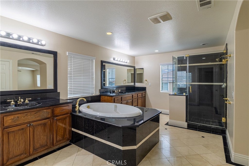 This is stunning, spacious home is located just minuties from TOP RATED schools with NO HOA in desirable neighbourhood of south Corona. Home features five bedrooms, including one downstairs, offers over 4,100 square feet of living space. Highlights include an open foyer with travertine flooring, high ceilings with abundant natural light, formal living with glass doors, seprate dining area for big family geatherings, a cozy family room with fireplace, a dream kitchen with ample counter top, center island, built in appliances, walk in pantry and serving station for dinning area. An upstairs spaciopus loft for family entertainment with mountain views. The primary bedroom boasts a retreat with soaking tub, shower, dual vanities, and a large walk-in closet, while other bedrooms are of good size providing lots of natural light making home bright & airy. One of the bedroom is with its own bathroom. The property also features a good-sized backyard with potential for RV parking, and is freshly painted both inside and out and new flooring.Won't be disappointed seeeing it.