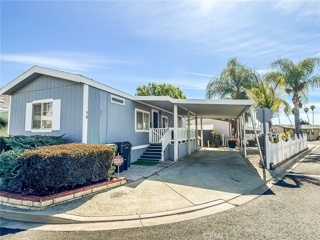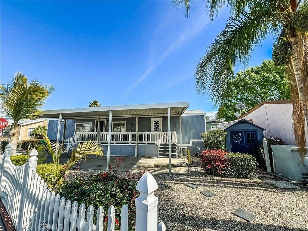 CHARMING AND MOVE-IN READY Home in Desirable LA VERNE COMMUNITY! Welcome to this beautifully maintained 2-bedroom, 1.5-bath manufactured home located in the peaceful Kings Way Gardens all-ages community in La Verne, within the HIGHLY RATED BONITA UNIFIED School District. Offering approximately 700 sq ft of thoughtfully designed living space, this home is one of the lowest-priced properties for its age in the area—an exceptional value! Step inside to an inviting open floor plan featuring high ceilings, fresh interior paint, and new flooring throughout the living, dining, and kitchen areas, creating a bright and welcoming atmosphere. The kitchen comes equipped with a refrigerator and new microwave and flows seamlessly into the main living spaces—perfect for everyday living and entertaining. The home features a PRIMARY BEDROOM with ample closet space, a FULL BATHROOM with tub/shower combo, and a SECONDARY BEDROOM with convenient half bath. A dedicated laundry area includes a newer washer/dryer combo for added ease. Situated on a large, fenced corner lot—one of the largest private yards in the community—the outdoor space includes a storage shed, covered front porch, and covered parking for two vehicles. Residents of Kings Way Gardens enjoy a variety of amenities, including a playground, clubhouse, swimming pool, spa, billiard room, dog park, and walking trails. Conveniently located near parks, shopping, public transportation, and freeway access, this home combines affordability, comfort, and location. Don’t miss this fantastic opportunity to own a well-kept home in a sought-after community—schedule your showing today!
