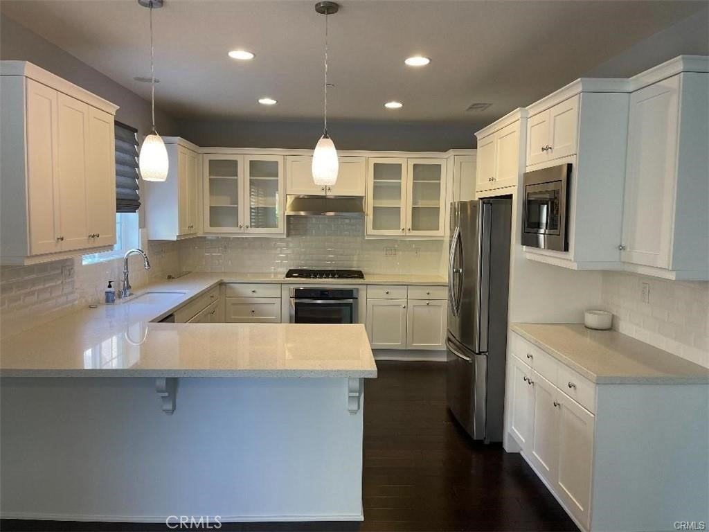 Baker Ranch Community, multiple community pools, parks, playgrounds, BBQ area, even baseball field and soccer field, hiking trails.... walking distance to a pool and park. This beautiful house with 4 bedrooms and 3 full bathrooms, 1 bedroom and 1 bathroom downstairs, wood flooring through out downstairs, high ceiling at entry, family room with wide sliding door leading to California room, waterfall, fire pit and artificial grass in the backyard. Kitchen with custom white cabinets and quartz counter top, stainless steel appliances and breakfast bar opens to dining room. Extra storage cabinets in the garage for everything you want to put in and still space for 2 cars. Upstairs with loft, spacious master bedroom, dual sink, separate tub and shower, walk-in closet, another small loft perfect for a desk space, addiction 2 spacious secondary bedrooms, 1 with walk-in closet, laundry room with sink, dual sink in the hallway bathroom, Plantation shutters throughout the house, Stainless steel Samsung 3-door refrigerator and washer and dryer will stay, 1 additional refrigerator in the garage will stay.