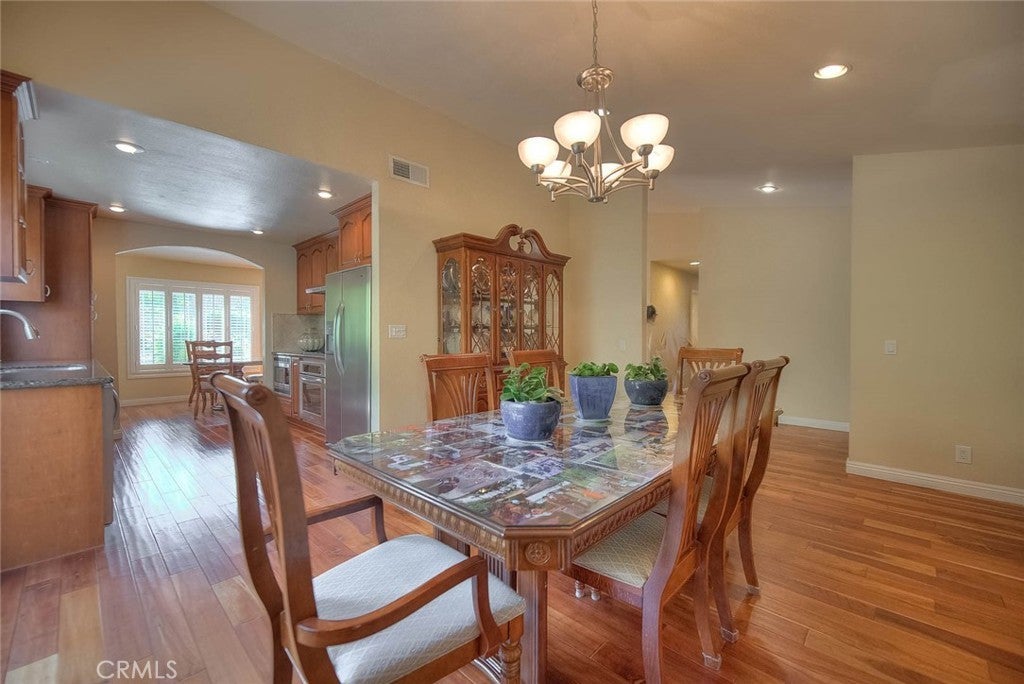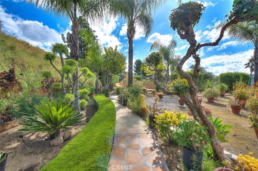 Are you looking for a one-story home with a spacious yard and panoramic view? This is the one! This home is sited on a private lot on over a third of an acre with usability! The property has been meticulously maintained and upgraded over the years, it is truly move-in condition. The covered front porch welcomes you to a custom double door entry. High ceilings, wood shutters, recessed lights, and wood floors go through most of the living areas and bedrooms. A family room is currently configured as a dining area, it is open to the kitchen- which is fully remodeled w/newer cabinets, granite counter tops, stainless steel appliances...The formal dining room is bright and adjacent to the living room and kitchen. The living room has a beautiful fireplace and a sliding door to the back yard entertainment paradise! Down the hallway are 3 bedrooms and an office (was a 4th bedroom). Both bathrooms are remodeled with beautiful materials: tiled showers, new toilets, cabinets, and sinks. The primary bedroom has vaulted ceilings and a sliding door to the backyard. Rich wood floors are in all of the bedrooms and the office. The office has a built-in desk and arched entry way. Put back you will be truly impressed with the size of the yard and the privacy provided. Distant views are of the Country Estates and city lights. The drought tolerant yard is easy to maintain. Multiple hose bibs are around the yard. A large seating area by the outdoor chimney offers views that will captivate you. There is plenty of room for construction of an adu. Gated small rv parking- but this can be made much larger by adding a retainer wall to the slope. Walk to the Chaparral middle and Maple Hill elementary schools. Diamond Bar High is one of the best in the state. It is hard to find a better school district than Walnut Valley. Diamond Bar offers a fabulous community center, parks, and shopping! Diamond Bar's motto is "Country Living". Come by and take a look at this fabulous property!