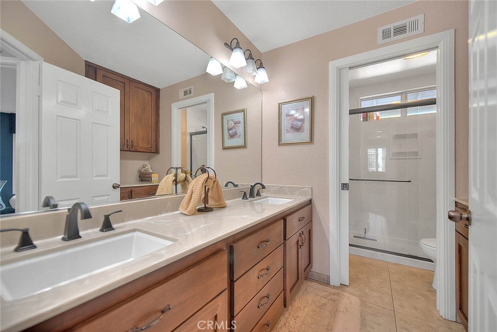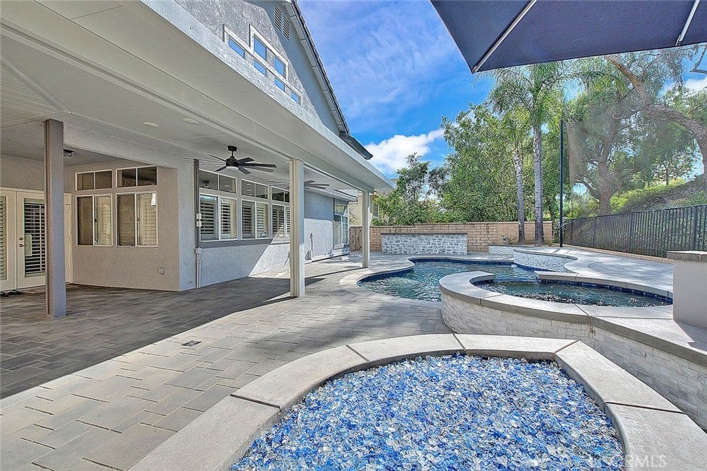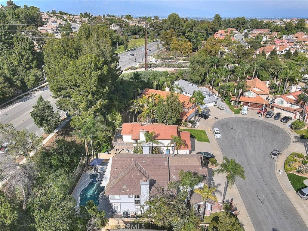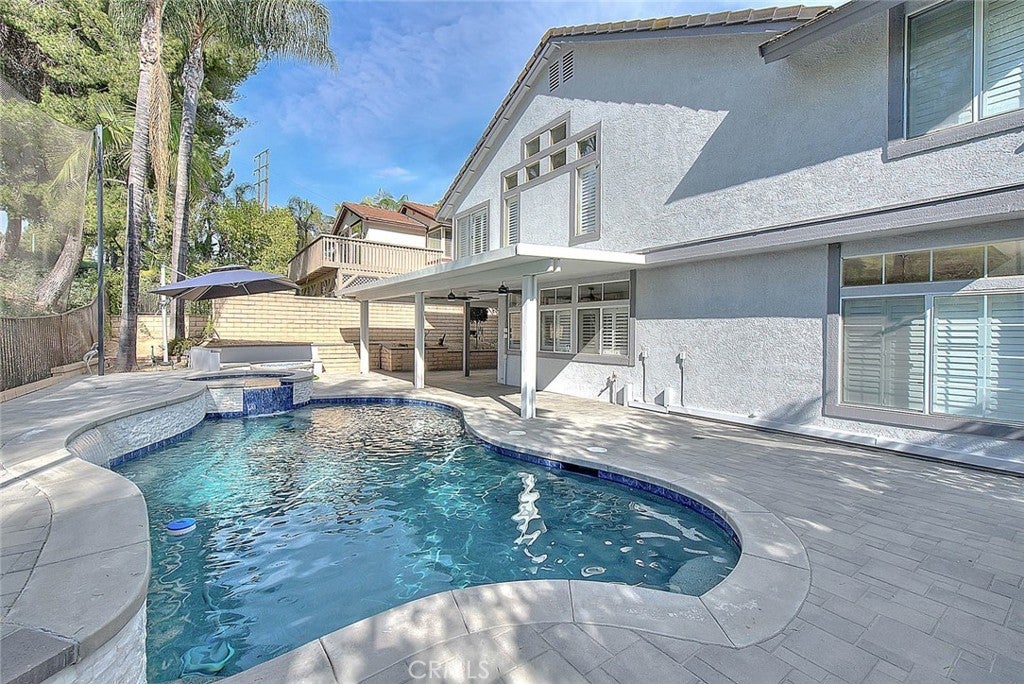 Located in the cul-de-sac of a highly sought-after North Chino Hills neighborhood, this spacious two-story home offers 5 bedrooms, 3 bathrooms, and a large bonus loft. The formal living and dining rooms provide an inviting setting for entertaining, enhanced by high ceilings and abundant natural light. The dine-in kitchen offers generous cabinet and counter space, and the family room—centered around a warm brick fireplace complemented by a wet bar and French doors that open onto the backyard—creating the perfect space for relaxing. The main floor includes one bedroom, a full bathroom, and a dedicated laundry room. Upstairs, the primary suite features a dual-sink vanity, soaking tub, walk-in shower, and walk-in closet. Three additional bedrooms, a full hall bathroom, and a spacious loft complete the second level. The private backyard is designed for entertaining, showcasing a sparkling pool and spa, a large covered patio, and a built-in BBQ. Conveniently located near parks, a Blue Ribbon–distinguished elementary school, and major shopping and dining destinations, this home offers both comfort and convenience. Don’t miss the opportunity to make this your new dream home.