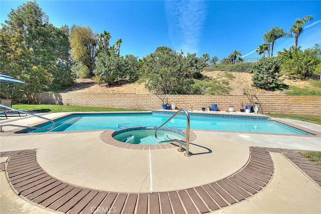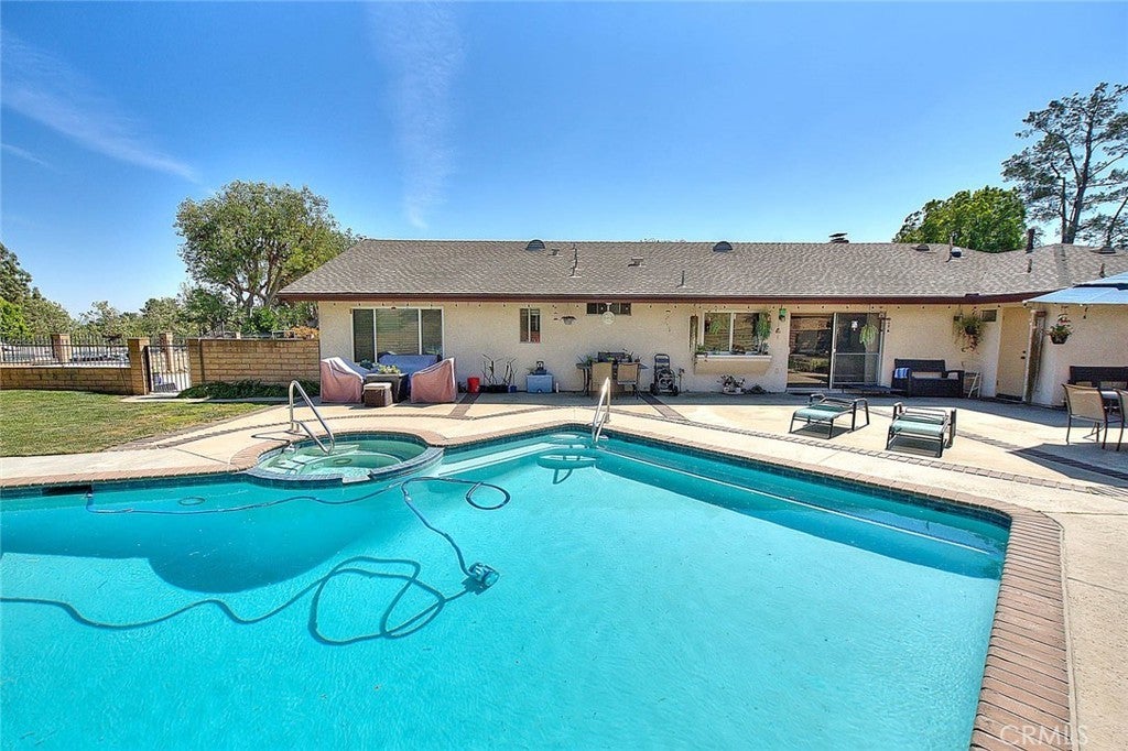 Located in a highly desired Chino Hills neighborhood, this single-story pool home offers 4 bedrooms, 3.5 bathrooms, and spacious living areas on an expansive lot with a sparkling pool and spa. The formal living room welcomes you with a warm fireplace, while the dine-in kitchen provides ample cabinet and counter space, stainless steel appliances, and convenient access to the adjacent family room. The layout includes a generous primary bedroom with an ensuite bathroom, three secondary bedrooms, two full bathrooms, a powder room, and an indoor laundry area. The large backyard is perfect for entertaining, featuring a refreshing pool and spa with plenty of additional space for outdoor enjoyment. You don't want to miss out on a wonderful opportunity to make this home your own!