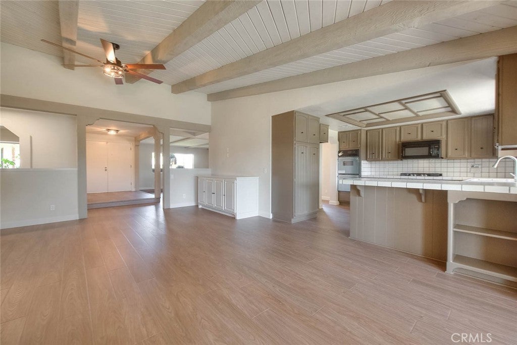 • Interior FeaturesBeamed Ceilings, Breakfast Bar, Breakfast Area, Ceiling Fan(s), Ceramic Counters, Separate/Formal Dining Room, Eat-in Kitchen, Open Floorplan, Recessed Lighting, Sunken Living Room, Main Level Primary, Primary Suite