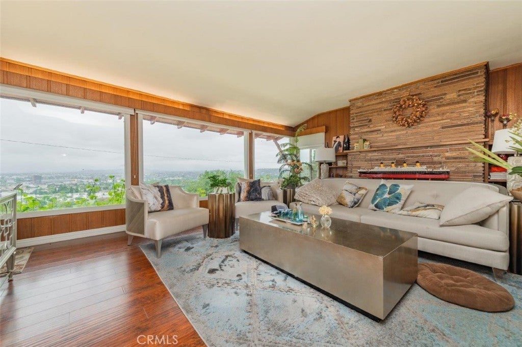This exceptional home is set on an elevated lot, offering breathtaking, expansive views of the mountains and shimmering city lights that provide a daily backdrop of natural splendor. The residence is ideally perched to maximize these stunning vistas from multiple vantage points throughout the home and its generous grounds, creating a captivating sense of serenity. Inside, the thoughtfully designed interior features large windows that frame the spectacular scenery and fill the space with an abundance of natural light. Flowing living areas are perfect for comfortable daily life and sophisticated entertaining. Rich wood flooring extends through common areas, complementing the classic charm of the inviting stone fireplace. The kitchen, equipped with modern appliances, warm wood cabinetry, and granite countertops, includes a breakfast bar for casual dining with exterior views. The substantial private grounds, benefiting from the property's elevated position, offer a rare opportunity for outdoor enjoyment, whether it's quiet relaxation amidst mature landscaping or al fresco dining with an unparalleled view. Located on a tranquil street, the home’s peaceful ambiance is further enhanced by its proximity to the South Hills Country Club, respected schools, and diverse shopping and dining options. This property presents a unique chance to embrace a lifestyle of comfort, beauty, and tranquility in a desirable community.