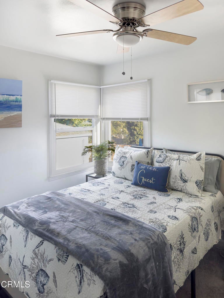 Discover this charming and thoughtfully renovated 3-bedroom home, ideally located in one of Ventura's most desirable and quaint neighborhoods. With freshly painted interiors, new laminate kitchen flooring, stylish new bathroom tiles, and plush carpeting throughout, this updated Mid-Century Modern residence offers a tranquil, move-in-ready retreat.Enjoy distant views of the Channel Islands and glimpses of the ocean on clear days, all from your front porch! Meanwhile, the expansive backyard, set on a generous lot, features a flourishing orange and avocado tree, as well as ample room for outdoor living. The yard is also spacious enough to build an ADU, offering excellent potential for additional living space or rental income.This property is currently a licensed and permitted vacation rental under professional management and can be sold fully furnished (furnishings are NOT included in the listing price and will be sold separately from the sale of the house,) making it a turn-key investment opportunity or a perfect starter home with cash flow potential!A newly paved concrete driveway leads to a detached, two-car garage, providing both convenience and ample parking, while the home's prime location offers easy access to shopping, dining and major freeways such as Hwy 101 and Hwy 126.Don't miss this incredible opportunity to purchase this unique property--Schedule a showing today!