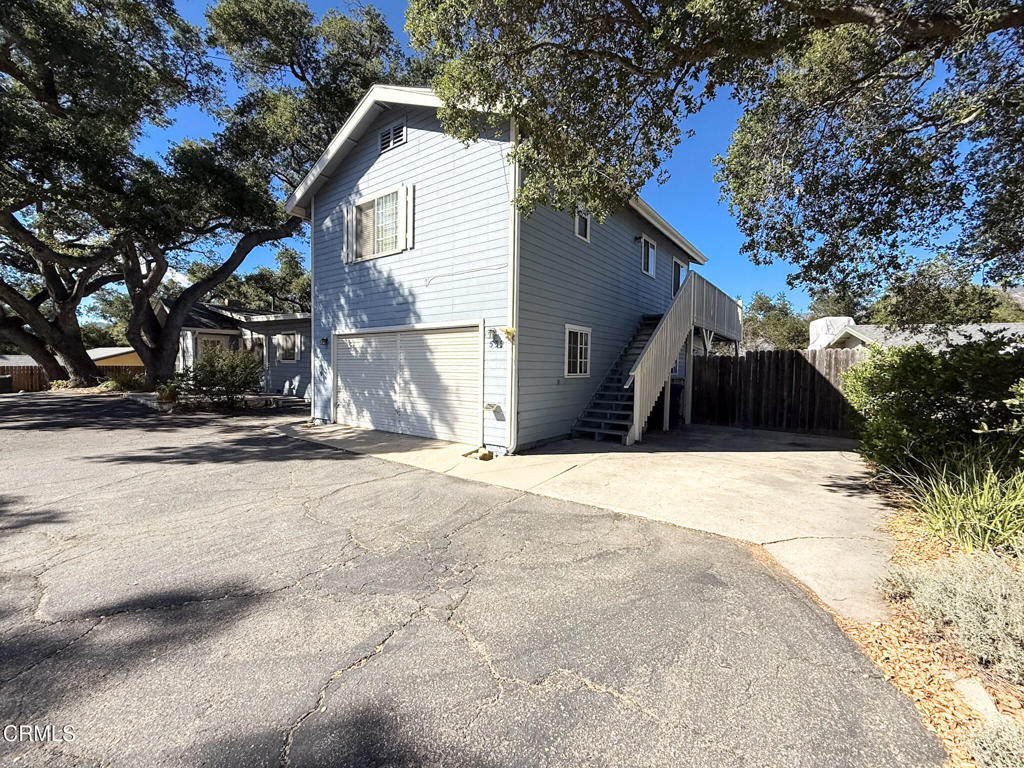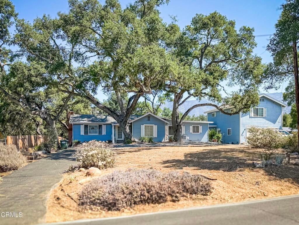 Set on an expansive 19,602 sq ft lot shaded by mature oak trees, this unique property offers a rare blend of character, space, and flexibility. The grounds include a single-story main house, a studio unit, an apartment, and a two-car garage, providing endless possibilities for multi-use living.The main house offers 1,523 sq ft of living space featuring a spacious open living room, 2 bedrooms, 2 bathrooms, 2 fireplaces, a dedicated laundry area, and a generous den--perfect for a home office, creative studio, or guest quarters.The studio unit is approximately 400 sq ft and includes a private entrance, kitchen, bathroom, and a combined living/dining/bedroom area. With two separate entrances, this space also makes an ideal master ensuite.The apartment offers approximately 700-750 sq ft with its own private entrance, beautiful mountain views, 1 bedroom, 1 bathroom, a full kitchen, and a comfortable living/dining area.*Buyer to verify the actual square footage of all units, as the measurements provided are rough estimates*This versatile layout is ideal for multi-generational living, extended guests, or rental income opportunities.Outside, the serene backyard offers a peaceful retreat from the everyday hustle--providing year-round natural beauty and plenty of room to relax. A convenient half-circle driveway allows for easy entry and exit with ample parking. Located near the Ojai Preserve and Oak Grove School, this property combines tranquility and convenience in a truly special setting.