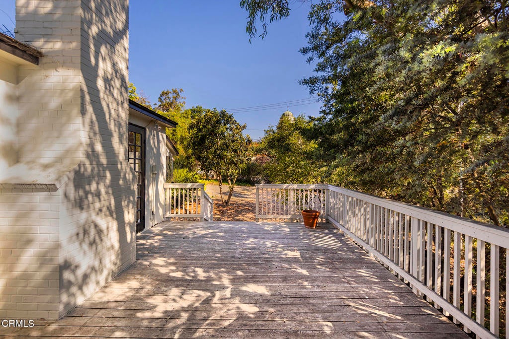 Nestled at the base of Ojai's prestigious Foothill Road, this enchanting 1950s residence captures the essence of California living with charm, character, and creative potential. With 2 bedrooms, 2 bathrooms, and a versatile flex space ideal for a home office or studio, this thoughtfully refreshed home offers both timeless appeal and modern convenience.Freshly painted inside and out, the interior features newly uncovered original hardwood floors, exuding warmth and authenticity. The kitchen has been tastefully updated with quartz countertops, a new stainless steel sink, sleek fixtures, and upgraded appliances. Elegant new lighting enhances the bedrooms, bathrooms, dining area, and entry, creating a welcoming ambiance throughout.Step outside to a beautifully remodeled 1,256-square-foot deckperfect for alfresco dining or quiet morning coffee by the tranquil courtyard fountain. The spacious lot provides ample room for a pool or a potential ADU, offering flexibility to expand or personalize.Located just a 10-minute stroll to downtown Ojai's charming boutiques, restaurants, Libbey Park, and the renowned Libbey Bowl, this home is a rare opportunity to enjoy the best of Ojai's historic lifestyle in a peaceful, desirable neighborhood setting.
