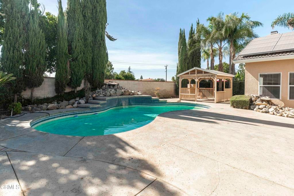 Just REDUCED $25,000! Motivated sellers!! This 3,086 sf, 4-bedroom home in Seven Oaks is a great deal in a great neighborhood. It is situated on a cul-du-sac lot which is walking distance from the highly-regarded Ronald Reagan Elementary School. The split-wing plan has a spacious kitchen with a large island, stainless-steel appliances and double ovens. It includes formal living and dining rooms, plus a huge family room which has large windows overlooking the backyard, a marble tile fireplace and a built-in entertainment center. One of the bedrooms near the entry has French doors and could be used as an office. The primary suite has plenty of room and features, dual vanities, a jetted tub, a walk-in closet and a fireplace. In the backyard you will find a sparkling pool, a recently painted gazebo, a covered patio and additional concrete hardscape. This is a great opportunity to acquire a lovely home in Seven Oaks.