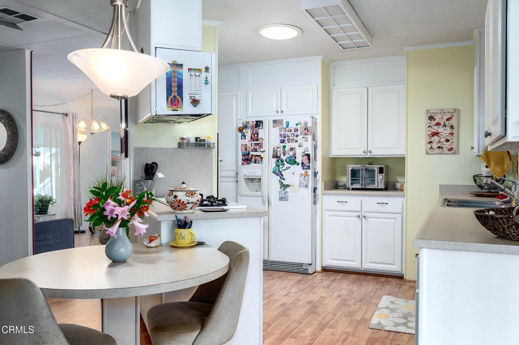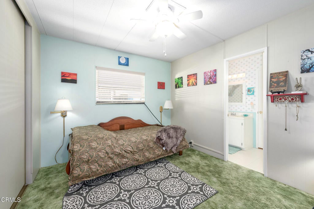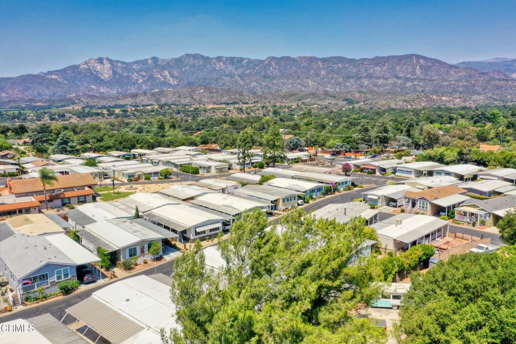 Welcome to 56 Don Antonio - a charming 2-bedroom, 2-bath mobile home nestled in the exclusive gated Ojai Villa 55+ community, offering stunning mountain views and a scenic walking path right behind the home. The open floor plan features vinyl-insulated windows, an updated kitchen, and a spacious primary suite with two closets and a dual-sink vanity. The guest bedroom enjoys its own separate bathroom for added privacy. Additional highlights include central A/C, a private backyard with breathtaking views, back gate access to RV storage, nearby bike trails, two large storage sheds, and more. This is Ojai living at its best!
