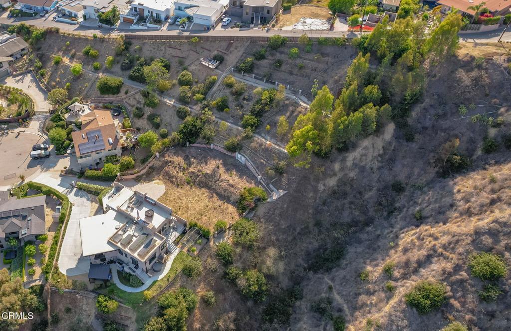 Private location at the end of the cul-de-sac behind the gate approximately 1 acre lot. Thomas Fire burn Lot the last buildable lot on the street. Owner has some renderings of a proposed house they were planning to build. Panoramic View. Potential to go 3 Stories. Multimillion Dollar homes on this wide street. Build your dream home.