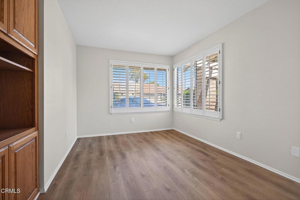 Enjoy California retirement living in this fresh, move-in-ready Amalfi (1,441 sq ft) set in Camarillo's sought-after Leisure Village senior living community.Freshly painted throughout and updated with wood-look vinyl plank flooring in most rooms, this inviting 2-bedroom, 2-bath home also features a versatile office/den for work, hobbies, or guests. The vaulted living room with custom shutters feels bright and airy, while updated bathrooms and an indoor laundry add everyday convenience. Tucked at the end of a quiet cul-de-sac with peaceful greenbelt views, the open patio is ideal for easy outdoor relaxation.Enjoy resort-style amenities--gated entrances, pool, spa, fitness center, golf course, clubhouse, tennis courts, and a full calendar of social activities. Comfort, community, and low-maintenance living in a prime Camarillo location!