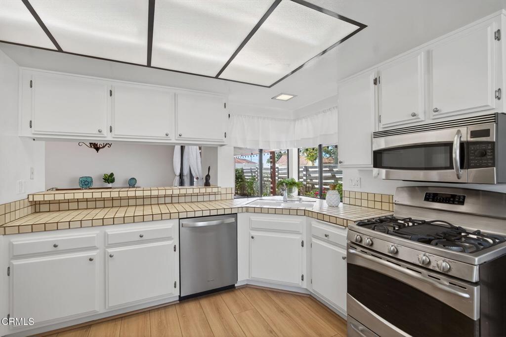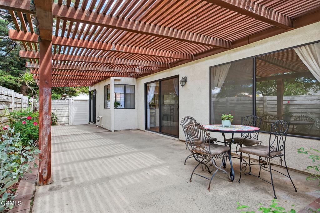 Welcome to Las Casitas, one of Camarillo's most desirable gated communities! This beautiful single-story offers the community's largest floor plan. 1,722 Sqft home with 2 bedrooms, 2 bathrooms, a den with wet bar (that can easily become a 3rd bedroom or an office), a bright atrium, and a pergola-style covered side patio for extra outdoor living.A bright kitchen features tile countertops, a corner view window with mountain and patio views, new plank flooring, stainless steel appliances, a new fridge, pull-out spice rack, enclosed laundry with washer/dryer, and a sliding door to the patio. Just off the kitchen, the dining area showcases vaulted ceilings that carry into the living room, where a cozy fireplace and a slider to the atrium create a warm, open space filled with natural light.The guest bedroom includes new carpet and a spacious closet, paired with a full bath featuring a tub/shower combo. In the primary suite, enjoy new carpet, patio access, a walk-in closet, soaking tub, separate shower, and double-sink vanity. The den provides flexibility as an office or entertaining space with its own slider to the atrium.Freshly painted throughout, with central AC, lush landscaping, and a sprinkler system, this home is move-in ready. The expansive covered patio which is accessible from the kitchen, dining, and primary offers plenty of room for entertaining or relaxing, with two gates for direct access to community amenities and the central park. A 2-car garage adds convenience with loft storage, power, and a pull-down ladder.Las Casitas is a gated community of 57 Mediterranean-style homes offering resort-style amenities: pool and spa, pickleball, basketball court, shuffleboard, putting green, horseshoe pit, RV parking, and a shaded central park with walking paths. HOA services include exterior maintenance, roof, stucco, and front yard care for easy living.All of this in a prime Camarillo location, just minutes to schools, the library, shopping, and the 101 Freeway. Don't miss the opportunity to own one of the best homes in Las Casitas!*Bedroom and den pictures are virtually staged*