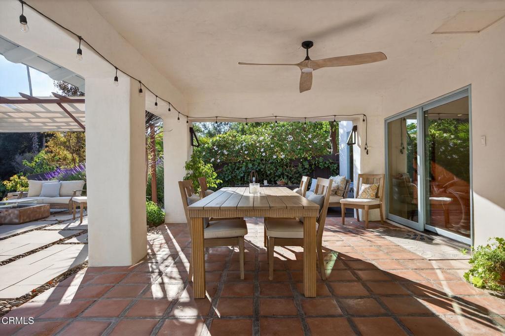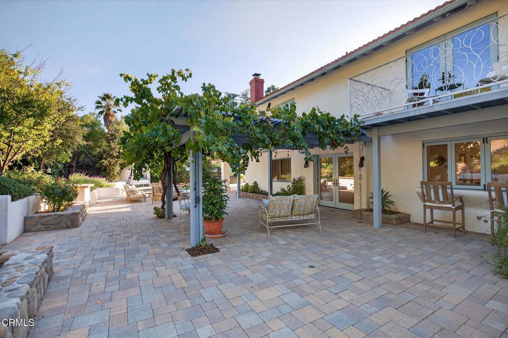 Tucked away at the end of a private lane behind the Arbolada, 1195 Rancho Court is a truly distinctive Ojai property blending the elegance of Spanish architecture with a hint of Southern hospitality. From the moment you step into the lush courtyard entry, you feel transported--tile underfoot, shaded verandas, and mature landscaping creating a cool, calming retreat.Inside, the home has been thoughtfully renovated in a contemporary style that honors its roots. The layout flows beautifully from room to room, offering a natural balance between gathering and quiet moments. The kitchen is both stunning and functional, featuring sleek finishes and an accordion window that opens wide to invite the Ojai breeze and connect seamlessly to the outdoor living spaces. Multiple living areas provide flexibility for entertaining, relaxing, or everyday routines, while fireplaces and natural light add warmth throughout.Upstairs, all bedrooms open to balconies, offering views and peaceful outdoor access. The primary suite is generously sized, with two balconies and a European-inspired bathroom featuring a soaking tub, large walk-in shower, and open-concept design that feels more spa than standard. The upstairs configuration provides a sense of privacy and separation while maintaining an easy connection to the main living areas below.Outside, the acre-plus property is full of surprises. The pool and above-ground spa are conveniently positioned near the house, enhancing the indoor-outdoor flow and making outdoor time feel like a true extension of the home. Additional features include a fire pit, built-in barbecue, and multiple patios for lounging, dining, or gathering under the stars. Beyond the main level, a gentle rise leads to a second plateau with a workshop, studio, or creative flex space, along with a whimsical treehouse perch capturing panoramic valley views. This upper tier opens opportunities for gardening, hobby farming, or a quiet place to reflect.Now offered at $2,850,000, this thoughtfully designed three-bedroom home presents a compelling opportunity to enjoy a flexible, well-balanced layout with exceptional indoor-outdoor living. The property lives comfortably and efficiently, offering spaces that adapt easily to work, study, creativity, or connection, living large while still feeling intimate.This is more than a home, it's a lifestyle in one of Ojai's most treasured tucked-away neighborhoods.