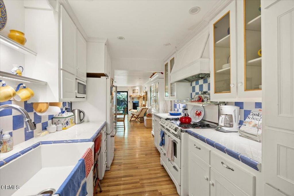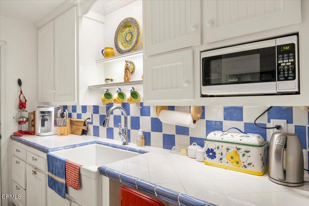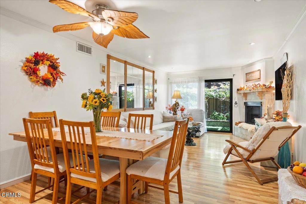 Beautifully Updated Condo in the Heart of Downtown Ventura! This charming 2 bed, 2 bath, 980 sqft home features a cozy living room with fireplace, wood-like flooring, canned lighting and tons of charm. The kitchen offers tile countertops and backsplash, and both bathrooms are well maintained. The spacious primary suite includes an en-suite bath and sliding door to a private outdoor patio. Second bedroom features plantation shutters and a built-in Murphy bed. Additional highlights include an attached 2-car garage with storage space and close proximity to the community hot tub. Located in a desirable Spanish-style complex, just steps to the San Buenaventura Mission, beaches, shopping, dining, and all that downtown Ventura has to offer. A must-see!