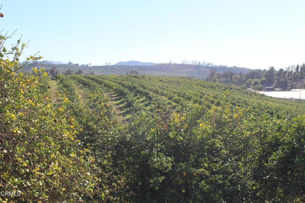 Great location for this lemon grove with many options for use. Beautiful terrain for a hillside view site establish your dream ranch home surrounded by groves. Upper and lower areas suitable for a horse facility located near the Southern California Equestrian Center, the West Coast Equine Hospital and the Turning Point Ranch. This area is becoming horse country! Convert the slopes to avocado plantings to create an incredible ranch property located amongst upscale homes and equine facilities. Privately owned well serves this property only with a recently installed new pump. Use the water anytime you want, no scheduling. Domestic water available from Ventura County Waterworks. Drive by today!