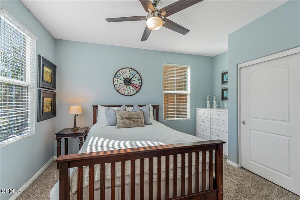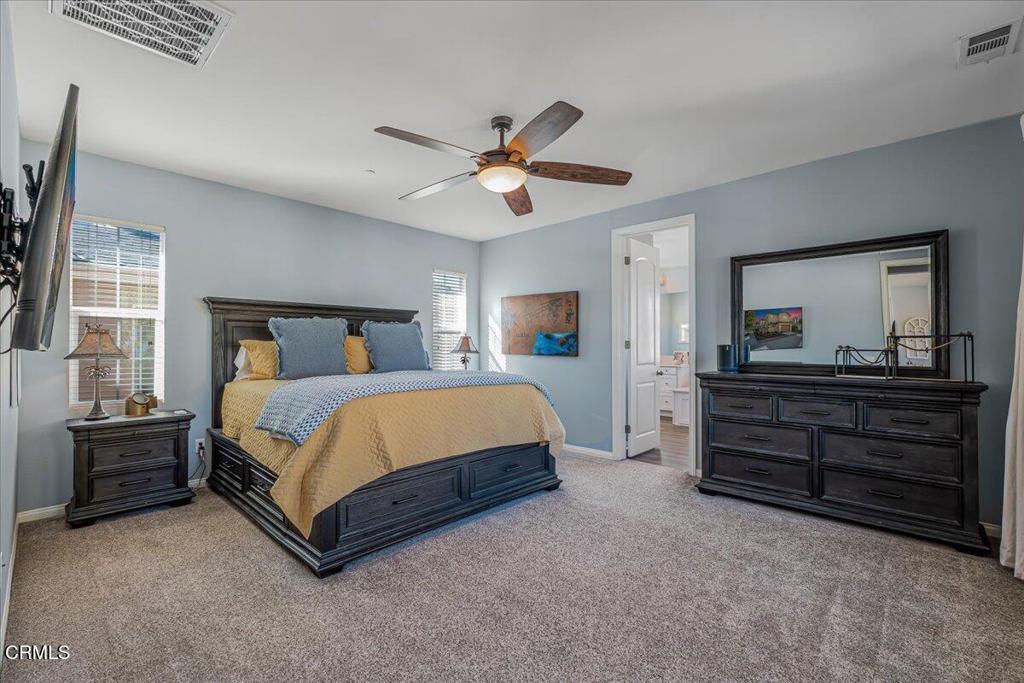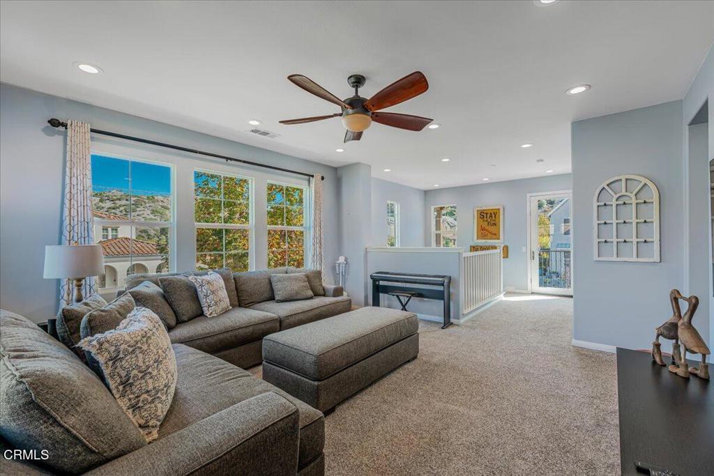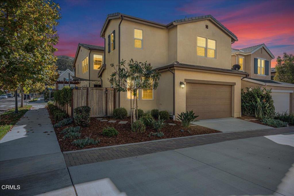 This is a stunning contemporary home in Ventura's desirable Solana Heights community with a potential $700,000 assumable loan at 3.125%. Built in 2018, this beautifully maintained 4-bedroom, 3-bath residence blends modern design, comfort, and coastal charm. The inviting open-concept layout features high ceilings, abundant natural light, and stylish finishes throughout.The gourmet kitchen is the heart of the home, offering quartz countertops, stainless steel appliances and an oversized island highlighted with pendant lighting accents, perfect for casual dining or entertaining. Multiple dining options include a formal dining area, breakfast bar seating, and a private outdoor patio ideal for evening meals.A convenient main-level bedroom and full bath provide flexibility for guests or multi-generational living. Upstairs, spacious bedrooms and a serene primary suite offer comfort and privacy, in addition to an open loft ideal for an office space or gym. Situated on a desirable corner lot, this home enjoys expanded patio space with a private spa, a 2-car garage, and mountain views. Residents of Solana Heights appreciate the community's parks, picnic areas, and playgrounds all just minutes from Ventura's beaches, hiking and biking trails, and the vibrant downtown scene.Experience elevated coastal living in this immaculate Ventura home where style, comfort, and location come together beautifully.