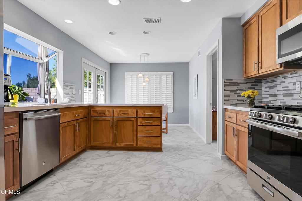 Fantastic opportunity to own a HOME within the coveted Valencia Northbridge Community. This amazing property offer Million Dollar Views from your private back yard, kitchen, family room and upstairs bedrooms. Situated just minutes from walking trails, paseos, neighborhood parks, bike paths, multiple pools, tennis courts and so much more. The primary suite offers a walk-in closet and a private balcony. Quality finishes throughout the property. Most noticeable upgrades include remodeled bathrooms and kitchen, marble tile floors, wood shutters, stamped concrete, in ground Private Pool and porcelain tile floors to name a few... The quiet cul-de-sac location offers peace, privacy and minimal through-traffic. The location is near shopping, dining and entertainment at the Valencia Town Center, along with easy access to major freeways for commuting or travel. Your private Oasis awaits!
