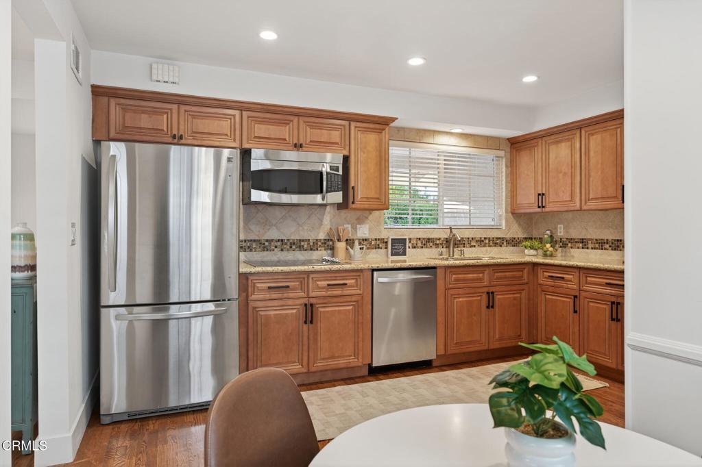 Welcome to 18924 Halsted Street, a beautifully maintained single-level home tucked away on a peaceful cul-de-sac in Northridge; proudly offered for the very first time since it was purchased new in 1963. This spacious and inviting residence offers nearly 2,200 square feet of living space, featuring four bedrooms, two and a half baths, and an office that can easily serve as a fifth bedroom. Inside, original hardwood floors flow throughout most of the home, complemented by new 24' X 48' marble-style tile (porcelain) flooring in the family room and office. The expansive family room, highlighted by a cozy fireplace, opens directly to the private backyard, perfect for relaxing or entertaining friends and family beneath the covered patio. The remodeled kitchen has been thoughtfully updated with maple color cabinetry featuring soft-close doors and drawers, granite countertops, modern hardware, and ample storage, creating a perfect balance of style and functionality. Adjacent to the kitchen, a convenient laundry room offers direct access to the side yard. The spacious primary suite provides a peaceful retreat with a large walk-in closet and an elegantly updated en-suite bathroom featuring a custom vanity, designer tile, and a step-in shower. The recently remodeled hall bath and powder room showcase fresh, modern finishes. The hall bath features dual sinks, white shaker cabinetry, and custom tile work on both the shower and floor. The half bath offers white tile flooring and an oak-colored vanity. Both bathrooms are finished with quartz countertops and coordinating black fixtures and hardware. Additional features include new interior doors and hardware, mirrored closet doors, full copper plumbing, updated ABS drain lines, dual-pane windows, recessed lighting, ceiling fans in every bedroom, fresh interior paint, and updated HVAC. A two-car garage and a large driveway with ample parking for all your toys, including an RV or a boat, provide exceptional convenience and versatility. Ideally located within walking distance to Topeka Drive Charter Elementary and Nobel Charter Middle School, and just a short drive to CSUN, shopping, hospitals, and easy access to the 118 and 101 freeways, this home combines timeless character with modern comfort and an unbeatable location. Lovingly cared for by the same family for over 60 years, this home is a rare Northridge treasure ready to welcome its next chapter of memories.