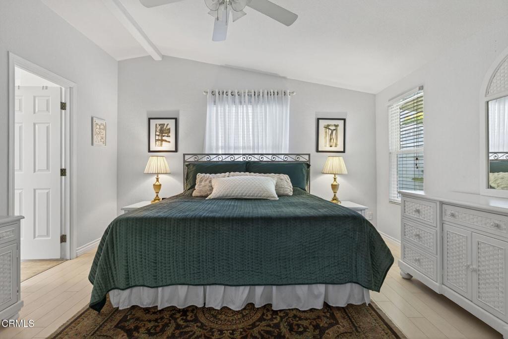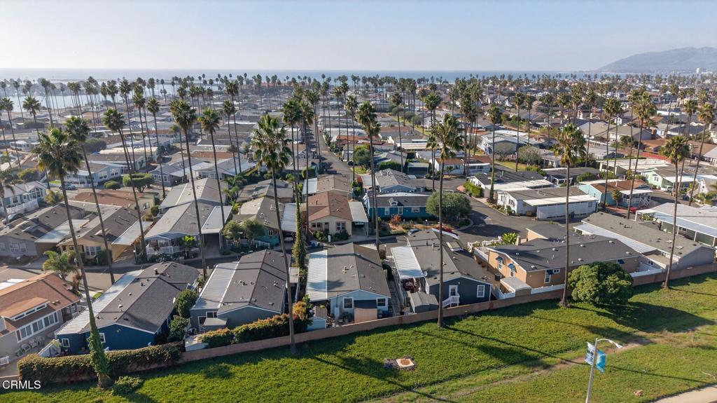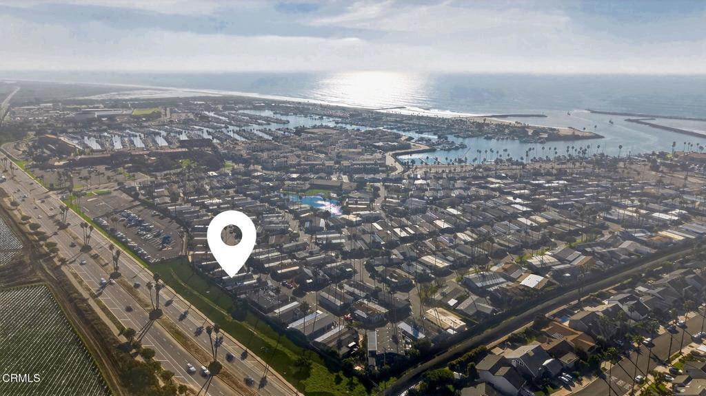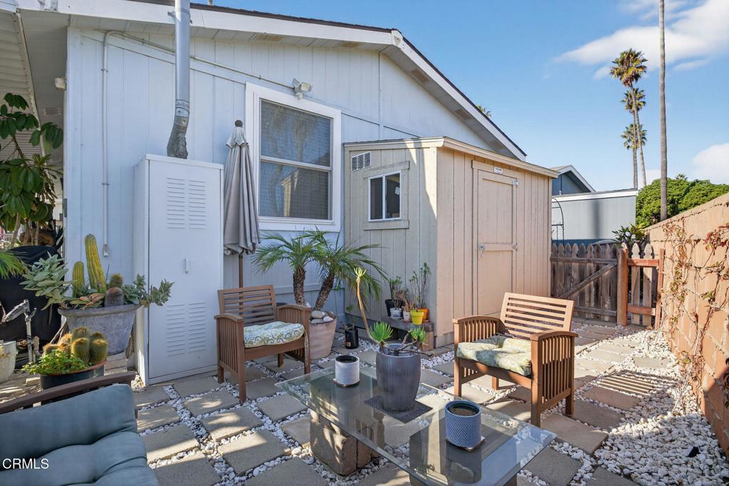 The ocean waves are calling. Just steps to the marina this 55+ home is perfect for the Buyer who wants a weekend getaway or a life by the water for a lot less than a couple of million dollars. The beach vibe is definitely present in this move-in ready 2 bedroom + 2bath. An expansive front deck beckons you to come on in while the open floorplan is both perfect for entertaining and yet warm enough for everyday living. While the open kitchen gives room for extra cooks in the kitchen and space for guests to raise a glass while the cook is at work, the dining nook is accentuated by a wall of windows to let the outside in. The over-sized primary suite features a large walk-in closet and generously sized attached bath. A vaulted ceiling brings in the light to make the room bright and cheerful. The secondary bedroom is located next to the hall bath making it convenient for guests. It features a custom beach mural by one of Ventura's local artists. Nicely located on a back lane, with no neighbors behind you; the rear garden area is set for cozy nights and has 2 storage houses giving you one for your favorite hobby and one for storage.Whether you are looking for a perfect lock and go getaway or a new chapter to enjoy the easy life by the water to smell that beach air....#44 is calling for you. Time to call for your private showing and get ready to fall in love.