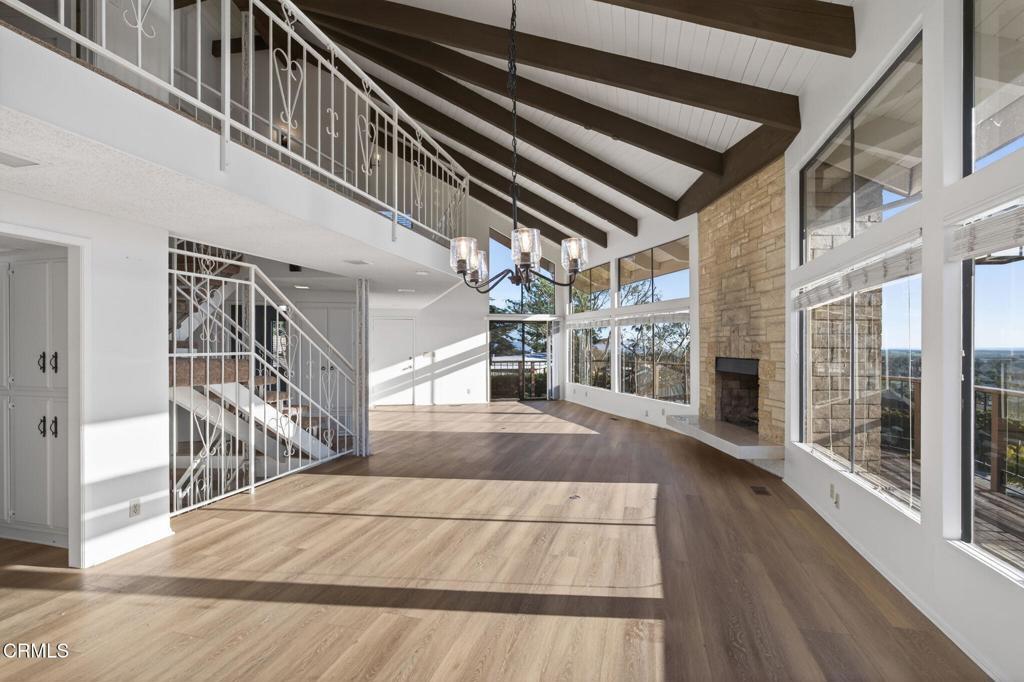 - Interior FeaturesBeamed Ceilings, Balcony, Cathedral Ceiling(s), High Ceilings, Multiple Staircases, Open Floorplan, Solid Surface Counters, Unfurnished, Bedroom on Main Level, Galley Kitchen, Primary Suite, Utility Room, Two Story Ceilings