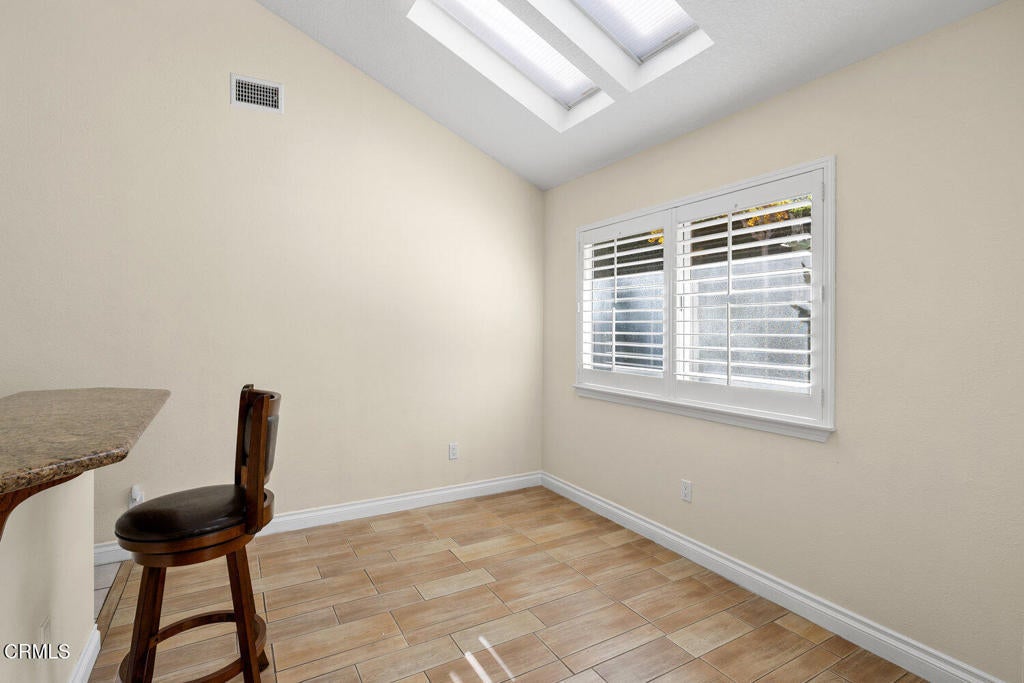 Welcome to this stunning single-story residence located in the highly sought-after Valley View Estates neighborhood of Wood Ranch. Perched on a beautiful knoll with serene views of the surrounding area, this lovingly maintained home offers exceptional comfort, style, and privacy.Thoughtful upgrades and meticulous care are evident throughout. Enjoy newer exterior paint, lush landscaping, and an inviting stone path entry accented with tasteful lighting. With no interior steps, this home provides effortless living at every turn.Inside, you'll find maple wood and laminate flooring, two fireplaces, plantation shutters, recessed lighting, mirrored wardrobes, and a versatile floor plan featuring a den that can easily serve as a fourth bedroom. The remodeled hall bath showcases modern finishes, while the interior laundry room--complete with sink--adds convenient functionality.The kitchen is beautifully appointed with granite countertops, solid wood cabinetry, stainless steel appliances, and skylights that fill the space with natural light. A charming wet bar enhances the home's appeal for entertaining.Step outside to a large private yard, perfect for relaxation or gatherings, highlighted by a pergola sitting area and mature greenery. Additional improvements include newer windows, newer AC, and a roof updated with new paper underlayment in 2022.Located near local neighborhood amenities including a private lake and nearby parks and recreational fields., this exceptional home blends tranquility, quality, and convenience in one of Wood Ranch's most desirable communities.