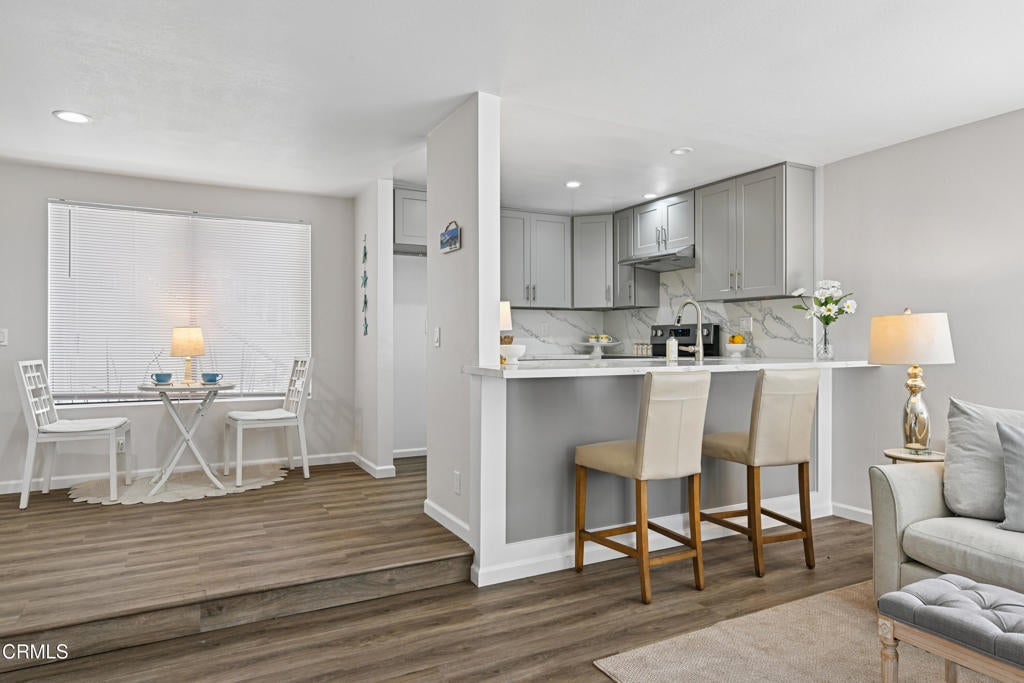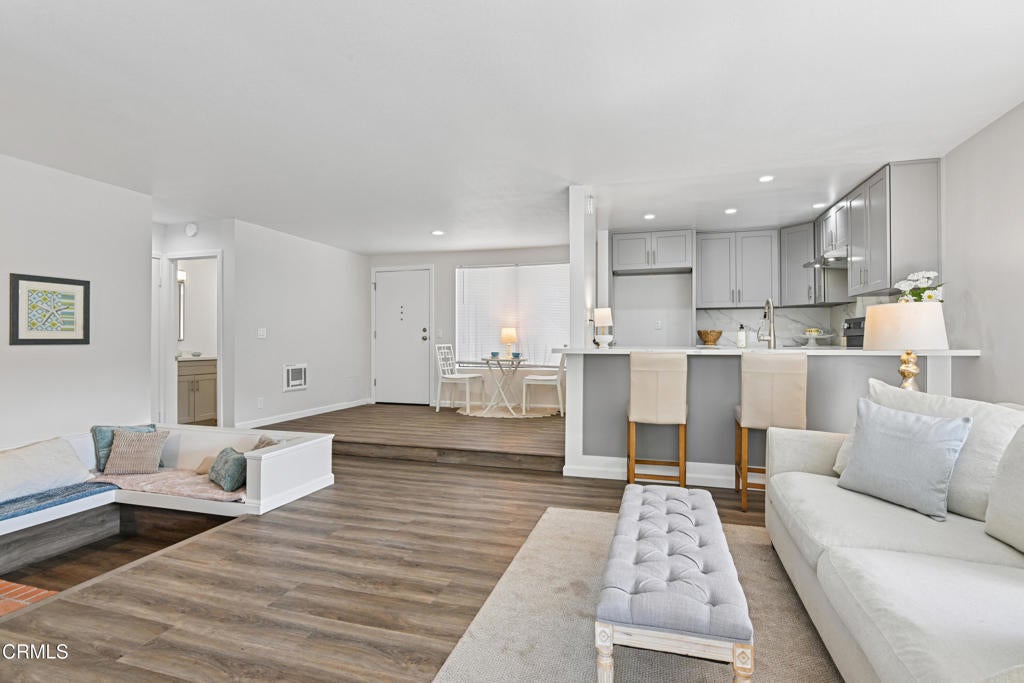 This beautifully remodeled, single-level Hollywood Beach condo is move-in ready and currently the lowest-priced home in the community -- an increasingly rare price opportunity this close to the sand.Inside, you'll find new wood-look flooring throughout, a designer kitchen featuring quartz countertops, all-new cabinetry, stainless steel appliances, and a generous full-size breakfast bar--perfect for casual mornings. The living room offers a charming step-down to the fireplace, complemented by a cozy wrap-around seating area ideal for relaxing or post-beach evenings. The bathroom has been remodeled with new vanity cabinetry and quartz countertops, and the home is filled with natural light thanks to beautiful dual-pane windows throughout. The covered patio, with sliders off both the living area and the bedroom, is perfect for barbecues and coastal lounging. Additional highlight includes a rare side by side two-car enclosed garage.As part of this exclusive community, residents enjoy access to a clubhouse, pool, spa, and tennis courts, along with optional on-site RV storage. Just steps from the beach, you'll fall asleep to the sound of the surf and wake up minutes from the harbor, waterfront dining, local shops, and the weekend Farmers Market across the street.This is true resort-style living--refined, relaxed, and ready for you.Come by an Open House or Schedule your private showing and make this luxury beach retreat yours.