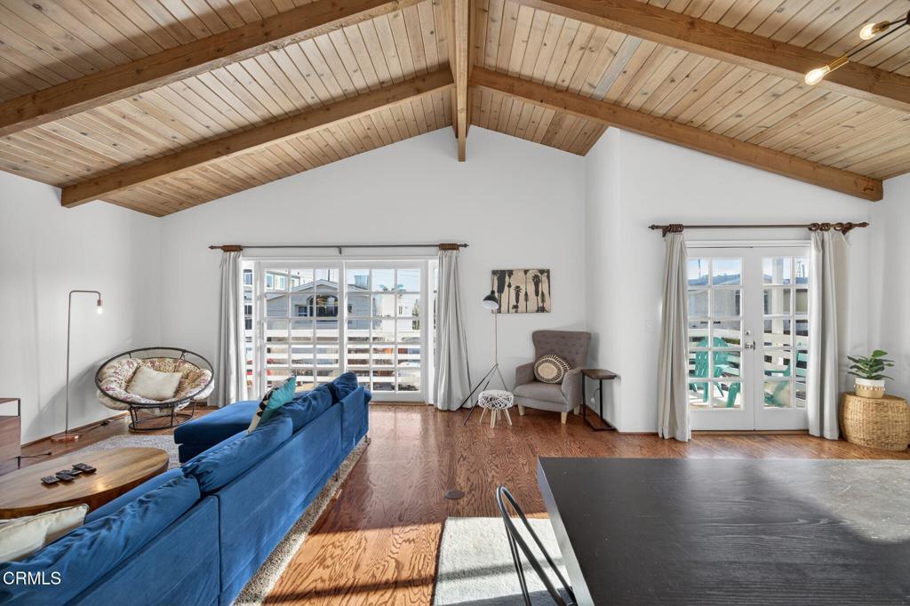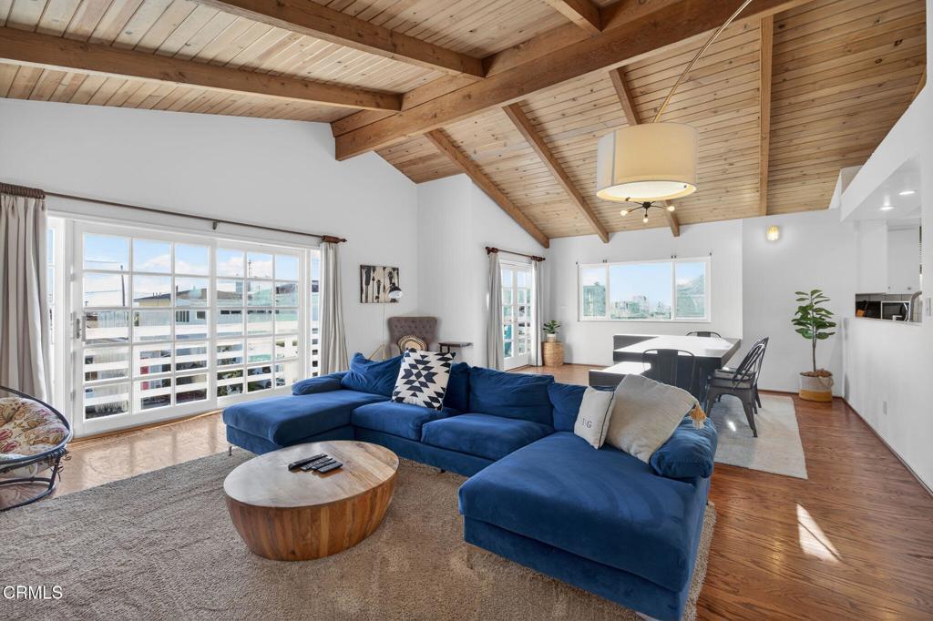 STEPS TO THE BEACH! Ideally located on one of Silver Strand's most desirable ocean-view streets, this coastal home captures the true essence of beach living.The first level offers a versatile living space with its own living room, one spacious bedroom, a playroom or office that can easily function as a fourth bedroom, a bathroom, and a separate entrance--perfect for guest quarters or multi-generational living.Upstairs, an oversized balcony provides the ideal setting to enjoy the beach community--check the waves, relax with a book, or take in stunning sunsets. Inside, windows galore fill the home with natural light and enhance the beach living experience. Open wood-beam ceilings and a generously sized living room create a warm, inviting space for family time, entertaining, or relaxing. The kitchen overlooks the dining area and deck, offering an excellent open layout ideal for entertaining.This is one of the only streets on the Strand featuring a rare 30-foot easement, allowing for spectacular views and a more open coastal feel. The primary bedroom is spacious and light-filled, complete with a nicely sized walk-in closet and abundant windows. The guest bedroom also features a walk-in closet and excellent natural light.The oversized garage provides ample storage for surfboards, beach chairs, kayaks, and more, while the large driveway offers plenty of parking for guests. Currently operating as a short-term rental, this home presents a fantastic opportunity for personal enjoyment, investment, or both.A must-see beach retreat--come experience the Silver Strand lifestyle at its best. Home comes fully furnished, minus a few personal items, ready for someone to use the day we close escrow. No HOA.