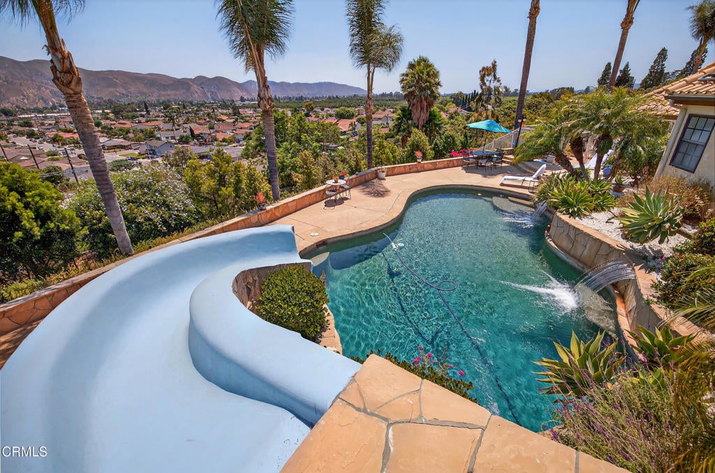 Ridgecrest Drive might be the most impeccable property available on the market today. Quite perfectly set within its own canyon of privacy, this beautiful Mediterranean embraces the mountains beyond and exists in the secret society of Santa Paula. Just a smidgen east of the Ventura City line, this is oh so close to the beach but far enough away to be in paradise. Hard to find or to live without is this single level and generously sized home presenting 180 degree views from everywhere including the gourmet kitchen which by the way, is for serious cooks. Inside feels light, bright and airy even on gloomy days. The rooms are big, the storage is incredible, all while feeling like home. There are two fireplaces, travertine tiles, cozy carpets, and luxury vinyl. Exquisite primary has an en-suite bathroom with steam shower, sunken tub, double vanities and a loft! Cook alfresco in an outdoor kitchen or rest poolside all while inhaling the majestic scenery. Feels like a spa. Collect cars and store them properly in the 3 car detached with again - storage. Feel the weight drop off upon arrival, or just hold your breath. There is not one moment where you won't be taken away by everything.