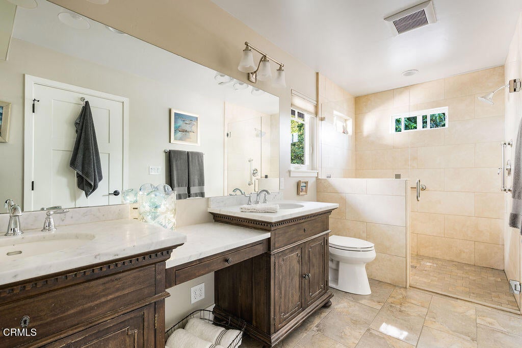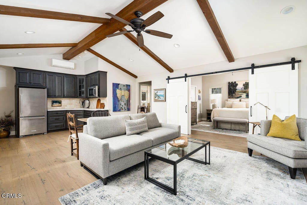 Enjoy this expansive 2,750+/- sq ft home offering 3 bedrooms plus an office and 3 bathrooms, with the flexibility to easily close an adjoining doorway and create a main residence with a private guest suite. Set on just under an acre in the desirable Skyline Park neighborhood, the property is framed by mature olive trees, blooming roses, and charming brick pathways--delivering a rare blend of comfort, style, and versatility. Multiple living spaces make it ideal for multi-generational living, guest accommodations, or inspired work-from-home setups.The beautifully remodeled main house, approximately 1,804+/- sq ft, features 2 bedrooms plus an office, 2 bathrooms, and a converted garage now serving as a spacious family room with bay windows and a cozy woodstove. The kitchen is a true focal point, highlighted by an oversized island with sink and seating for three, rustic brick backsplash, and quality finishes throughout. Wood-beamed ceilings, a striking stone fireplace, and French doors define the inviting living room, opening to a backyard retreat complete with a private pool and spa--perfect for entertaining or relaxing under the stars.A thoughtfully designed addition completed in 2016, approximately 900+/- sq ft, offers a 1 bedroom, 1 bathroom guest suite with its own entrance, open kitchenette and living area with fireplace, walk-in closet, laundry, and a fenced private yard. Tucked along the ranch-style drive, the barn structure provides parking for three cars, an office, and an upstairs 798+/- sq ft 1 bedroom, 1 bathroom cabana. Outdoor amenities also include a corral and turnout suitable for a horse or 4-H animals, space to garden, and ample parking for recreational vehicles.Conveniently located just minutes from Santa Ynez Valley High School, the YMCA, and downtown Santa Ynez, this peaceful property also benefits from non-metered water at a flat quarterly rate ($449) and all the character and appeal of the Skyline Park community.