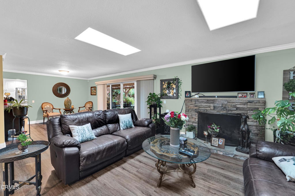 Welcome to 219 Castilian Ave, a beautifully maintained and thoughtfully upgraded home nestled in a desirable Newbury Park neighborhood. Offering 4 bedrooms, 3 bathrooms, and approximately 2,015 sq ft of living space, this residence blends comfort, functionality, and outdoor enjoyment. Nice open floor plan with large kitchen open to family room and living room open to dining room. Many features include: custom white cabinets in kitchen with pull outs, granite counters, stainless steel appliances & garden window, crown moldings and large baseboards, 6 panel interior doors, beautiful leaded glass front doors, skylights in living room with stacked stone fireplace, smooth ceilings, vinyl (wood type) flooring, tile roof, attic fan, replaced attic insulation, closet organizers and ceiling fans in all bedrooms, large storage shed in the backyard, custom built side yard covered storage area, and more! Step outside to enjoy mountain views from the backyard! This property has good curb appeal with exterior trim, rain gutters, fence and patio cover. Property in move in condition!