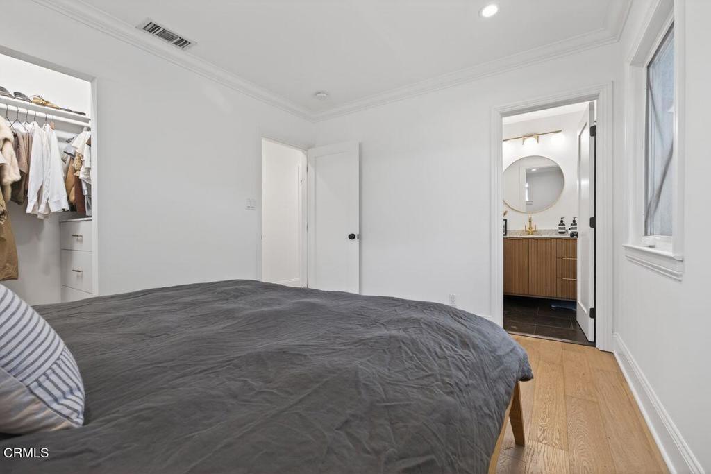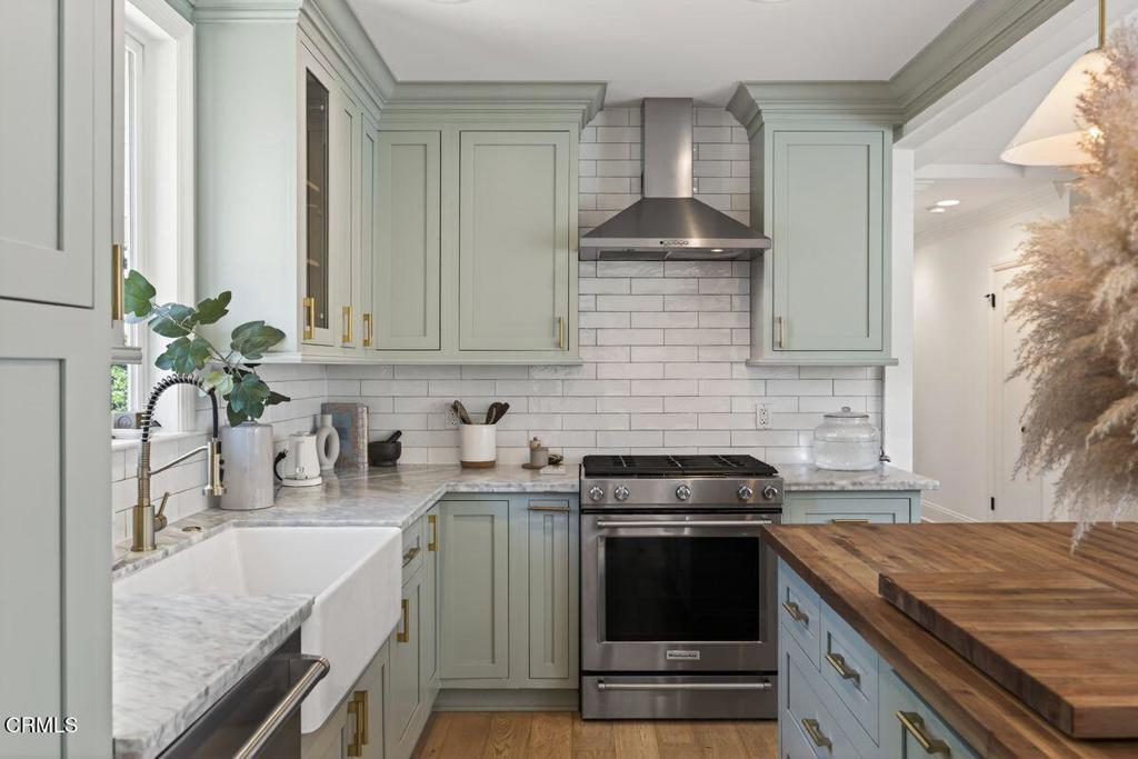 This downtown gem offers style, comfort, and the quintessential Ojai lifestyle in one exceptional property. The home features a thoughtfully updated kitchen with chic dining nook and a light-filled living room with mountain views, all connected by an open-concept layout ideal for everyday living and effortless entertaining. Gorgeous white oak flooring runs throughout, adding warmth and a refined, cohesive feel. The home includes a comfortable primary suite with walk in closet, along with two additional bedrooms, complemented by stylishly updated bathrooms that reflect the home's polished aesthetic. Outdoors, mature hedges frame the perimeter, enveloping the property in privacy and creating a serene garden retreat. An extraordinary collection of productive fruit trees-- including lemon, orange, grape, passionfruit, dragon fruit, pomegranate, avocado, guava, and olive, along with younger kumquat and lime trees -- offers the simple pleasure of harvesting from your own backyard. Low-maintenance landscaping allows more time to relax, entertain, and enjoy the setting. A detached studio provides flexible space ideal for a home office, art studio, or gym, while owned solar, a battery backup system, and an EV charger add modern efficiency and peace of mind. As an added bonus, comprehensive plans for a garage ADU conversion and bedroom and bathroom expansion are included in the sale and ready for approval. Just moments from Ojai's beloved shops, restaurants, and farmers market, this special property offers the rare opportunity to live connected to both nature and community in the heart of town.