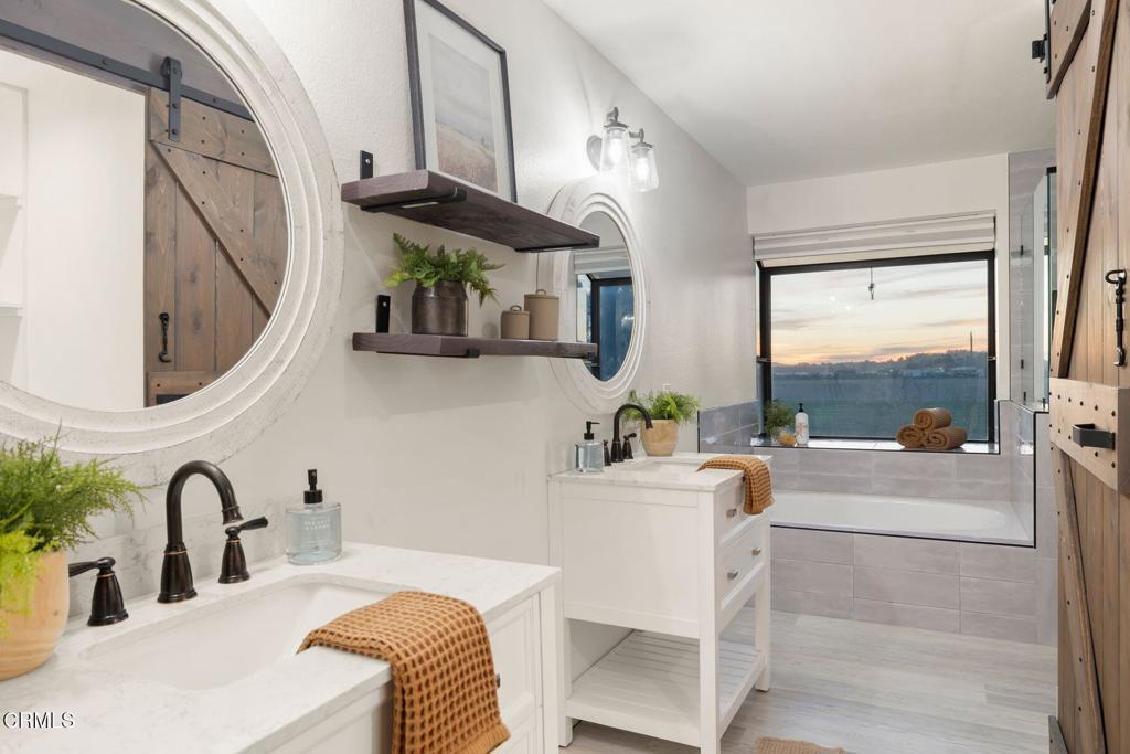 ***PRICE IMPROVEMENT!!*** Set against the tranquil backdrop of open farmland with no rear neighbor, this stunning 2,700+sf South Moorpark residence offers the rare blend of privacy, and elevated living. Endless skies & breathtaking sunset views create a daily masterpiece right from your own backyard. Beyond its alluring curb appeal & meticulous landscape, the home's light-filled interior welcomes you with soaring ceilings, and an expansive open layout- offering two spacious living areas, each anchored by their own fireplace. A formal dining room provides the perfect setting for elegant dinners, while the beautifully updated kitchen opens seamlessly to an additional casual dining nook, ideal for morning coffee or sunset meals. The spacious kitchen is complete with ample storage space, new stainless appliances, butcher block counter tops, gas range, wine fridge and a large bay window to welcome mountain views and stunning sunsets. Step outside to the backyard where a spacious covered patio sets the stage for year-round outdoor living. The full perimeter of mature fruit trees (apples, oranges, guava, pomelo and multiple citrus) creates a lush orchard-like setting--while tall ficus hedges provide additional privacy and a rich green backdrop. Fully plumbed for both an above ground pool and hot tub, the space provides endless possibilities for outdoor fun. Upstairs, the home features all four spacious bedrooms and two additional fully renovated baths- ideally keeping living areas downstairs, while maintaining privacy and separation above. The massive primary suite is a true retreat- a sanctuary with generous proportions, abundant natural light, and a beautifully updated bath with dual vanities, soaking tub, large shower, walk-in closet, and exceptional birds eye views of the serene farmland below. Down the hall are three additional bedrooms, and fully updated guest bath with walk in shower. Countless highlights include all newer dual pane windows with privacy shades throughout, recessed lighting, laminate flooring, central air conditioning, fully owned Brinks alarm system with security cameras and doorbell camera, and multiple eero wifi extenders. Large THREE-car attached garage provides ample storage and parking, plus TWO Tesla brand EV car chargers! Relish in the luxury of this modern and move-in ready home, while only minutes to parks, great schools, restaurants, shopping, and all that beautiful Moorpark has to offer!