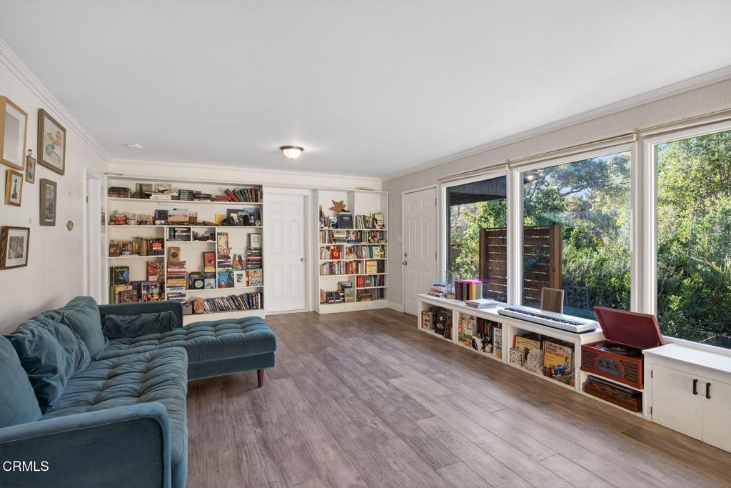 Welcome to 546 South La Luna Avenue. A Mid Century oasis on the cusp of Meiners Oaks. This home is truly a Ojai treasure. The pinnacle of indoor/outdoor living. The untamed garden full of native plants and mature fruit trees visible through the stunning bay windows in the living room. Persimmon, lemon, peach, pomegranate, avocado and blood oranges make every season so special. There is a young pineapple guava and kumquat as well, ready to grow with you as you make this home your own. There are nine garden beds ready for your touch. Rosemary adorns every corner along with oregano, thyme and three varieties of lavender. The gated backyard features a large deck and outdoor shower. The perfect way to relax after a Ventura surf session or long meandering river trail. The river is only a short distance away! There is a primary bedroom, a lovely bathroom also featuring a bonus room currently set up as a nursery. Enjoy cooking in your galley kitchen and entertaining friends or enjoying evening meals under your covered patio all while looking out to your natured landscaped yard. Inside offers custom built bookcases and an adorable window seat adding warmth and depth to this inviting space. The spacious front yard has plenty of room for an airstream or provides a canvas for all your gardening dreams. Homes of this style and charm do not come on the market that often, come and explore the nature and tranquility that 546 S. La Luna Ave has to offer.