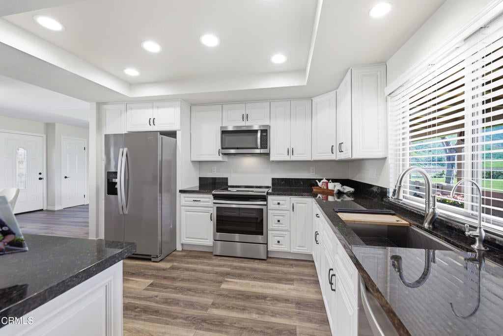 Wow! Welcome to this beautifully refreshed home with BREATHTAKING VIEWS, nestled within the sought-after 55+ gated community of Leisure Village in the heart of Camarillo.The Amalfi model features 2 bedrooms, 2 baths and an office/den. Every detail has been thoughtfully updated. Wide-plank luxury vinyl flooring flows through, complemented by a soft, neutral palette that creates a light and inviting atmosphere. The kitchen has been tastefully remodeled with granite countertops, stainless steel appliances, and smart storage solutions including soft-close drawers and convenient pull-outs.Both bathrooms have been redesigned with a clean, modern aesthetic, showcasing upgraded vanities, contemporary lighting, and beautifully tiled walk-in showers with sleek glass enclosures. Mirrored closet doors and an interior laundry room add both style and everyday convenience.Step outside to a spacious custom-covered patio illuminated by skylights, an inviting space to unwind, entertain, or simply take in the peaceful surroundings and scenic mountain backdrop.The HOA enhances the lifestyle by covering select utilities, cable, internet, landscaping, 24-hour security, and access to an array of amenities and vibrant social activities. This home offers more than just a place to live--it offers the very best of the Southern California lifestyle.Don't miss the opportunity to view this lovely home!