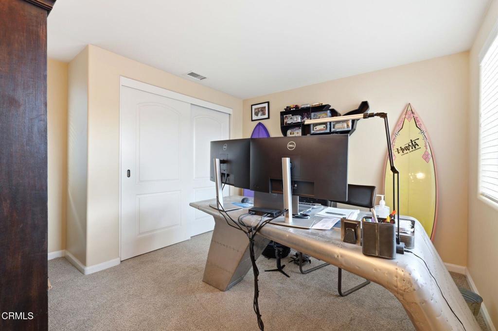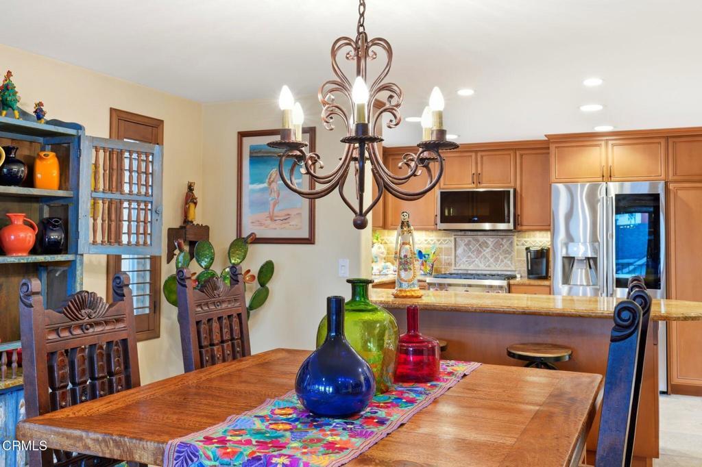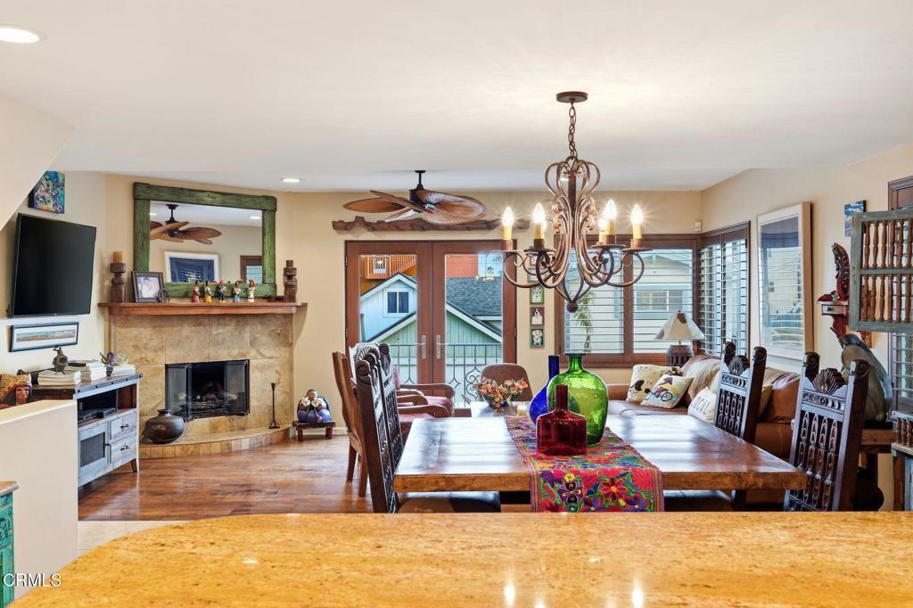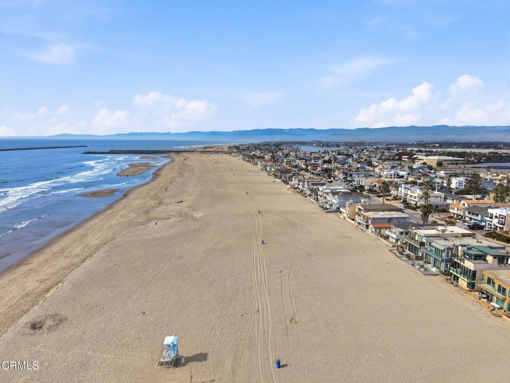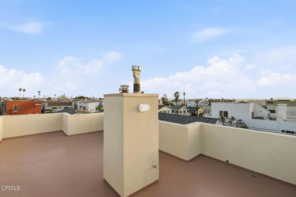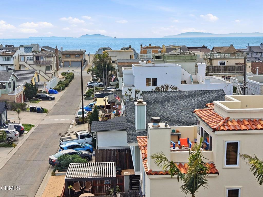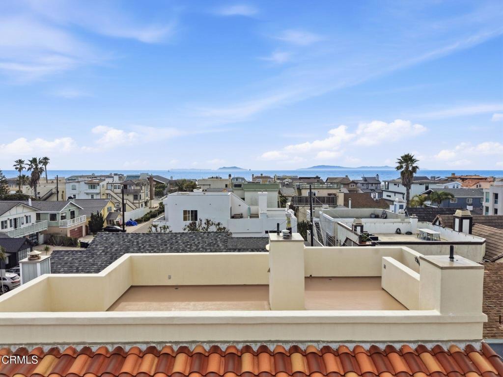 Just eight houses from the sand, this meticulously maintained Spanish-style home delivers the full beach lifestyle without compromise. From the hand-carved solid wood entry door and Talavera tile accents to the travertine floors and wrought iron staircase, the craftsmanship throughout is a cut above; every surface thoughtfully finished, nothing overlooked.The open main level flows easily from a generous living room anchored by a travertine fireplace to a warm dining area and a chef's kitchen with rich custom cabinetry, granite countertops, stainless appliances, and a peninsula counter that invites casual dining and conversation. Wood shutters, and a tropical ceiling fan give the space a relaxed, coastal character that feels both polished and lived-in.The primary suite is a true retreat; spacious and quiet, with a jetted soaking tub, walk-in tiled shower, and custom vanity. Two additional bedrooms and a versatile lower-level bonus room with a fireplace and wet bar round out the 2,177 sq ft of living space across three floors.The crown of the home is the private rooftop deck - open sky, ocean horizon, and the Channel Islands floating on the water. Sunsets here are something else entirely.With a 2-car garage, front patio courtyard, and beach access steps away, this is the rare property that checks every box - built with care, kept with pride, and ready for its next chapter.