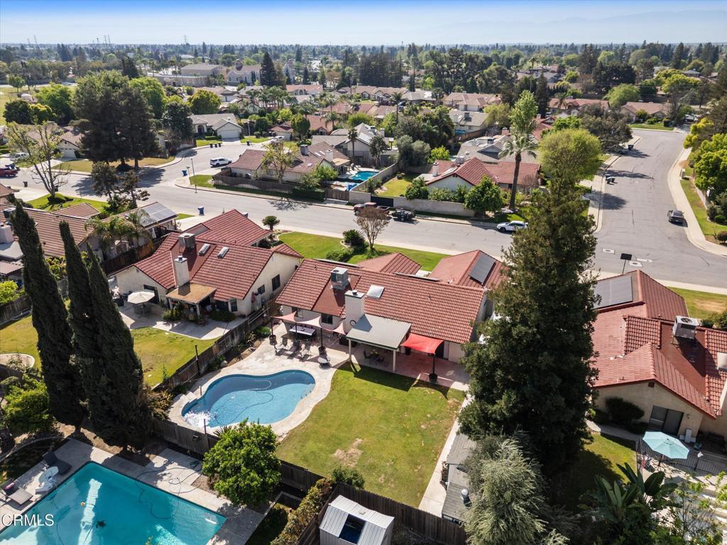 OWNED SOLAR! Located in the highly desirable Oaks neighborhood of Southwest Bakersfield, this beautifully maintained 4-bedroom, 2-bath home offers 1,809 sq ft of living space on an expansive 10,454 sq ft lot. Situated near some of the area's top-rated schools, this property combines comfort, convenience, and functionality.The home features a well-designed layout with a formal dining room, spacious family room, and an indoor laundry room. Interior upgrades include bathroom remodels, granite countertops, tile flooring throughout the main living areas, and carpeted bedrooms for added comfort. A two-car garage and a no-monitoring-fee security system providing additional practicality and peace of mind.Step outside to enjoy a saltwater pool and a generous backyard that includes two storage sheds (8'x10' and 6'x10') with electrical outlet and lights. The property also boasts an exceptional 65' x 14' gated RV parking area--one of the largest available--complete with both 30-amp and 50-amp hookups, easily accommodating an RV with a truck attached.Additional highlights include owned solar for energy efficiency and a prime location within walking distance to a local park and a nearby shopping center offering groceries, dining, entertainment, banking, and spa services.This home truly offers the space, features, and location buyers are looking for--don't miss the opportunity to make it yours.