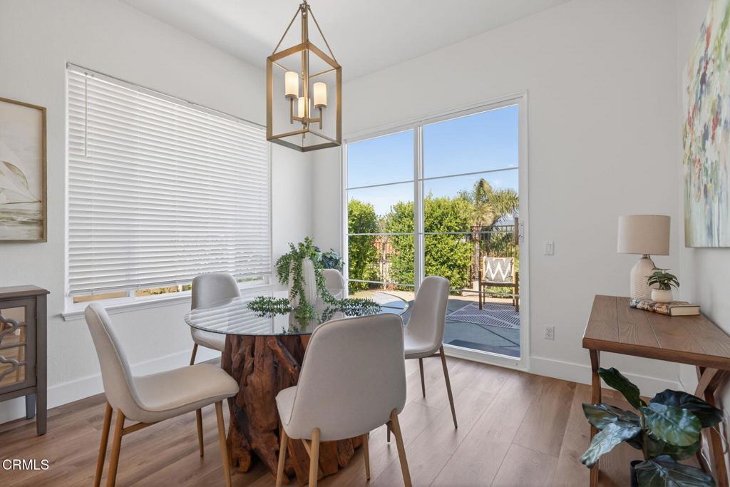 Views take center stage in this exceptional home, where a premier location meets sweeping mountain vistas and glowing city lights, a rare and striking combination that sets this residence apart. Welcome to 931 Corte Augusta, ideally positioned within the prestigious, gated Golf Villa II community within Spanish Hills. This residence is one of only a select few to offer breathtaking views, enjoyed from all main living areas, one of the upstairs bedrooms, and the inviting backyard--perfect for entertaining family and friends while taking in the scenery. A second upstairs bedroom also has the potential to capture similar views with the replacement of two smaller windows with a larger picture window. The home offers 3 bedrooms, 2.5 bathrooms, and 1,623 square feet of thoughtfully designed living space. The first floor features a versatile layout ideal for both everyday living and entertaining. Highlights include a cozy family room centered around a fireplace with a custom mantel, and hearth, a flexible space that can serve as a formal dining area or sitting room, and an inviting kitchen with a generously sized breakfast nook for casual meals. High-end luxury vinyl plank flooring flows throughout the first floor, staircase, and upstairs hallways, while all three bedrooms are carpeted. The primary suite provides a private retreat, separated from the other bedrooms, and includes a walk-in closet and a private balcony. The recently remodeled primary bathroom features a custom vanity with quartzite countertops, dual sinks, illuminated mirrors, a spacious shower, and a private water closet. The secondary bathroom has also been remodeled, featuring custom tile work, a large soaking tub, and elegant matte-gold plumbing fixtures. Additional features include central air conditioning, dual-pane vinyl windows, a private laundry room, and a two car garage for convenience and comfort. The $480 monthly HOA dues provides gated security and access to desirable amenities including a clubhouse, pool, spa, and RV parking. The community is also within walking distance of the renowned Spanish Hills Country Club, offering multiple membership options with access to golf, tennis, pickleball, swimming, and a highly rated restaurant. The home is also ideally located near the Camarillo Premium Outlets and the Camarillo Airport, with quick access to both the 101 and 118 freeways, perfect for commuters or anyone who values convenience and connectivity.