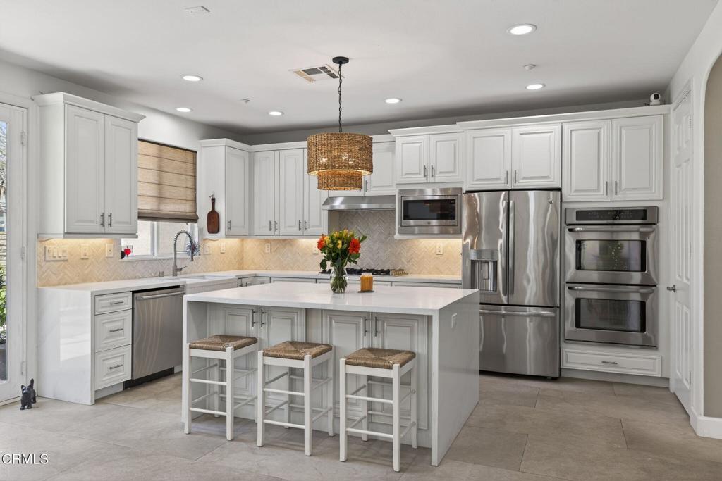 North Oxnard prestigious gated community 'Victoria Estates'. Rarely on the market, this exceptional single level home offers 4 bedroom, 4 bathroom, approximately 2,464 sq.ft. on a 7,315 sq. ft. lot, 1 primary on suite, and 2 mini primary on suite bedrooms which is great for family's & guests. You'll love the fully remodeled interior ( kitchen & bathrooms ). Quartz countertops, upgraded cabinets, stainless steel appliances. LED illuminated vanity mirrors, upgraded laundry room ( washer & dryer included ), Hampton Bay ceiling fans, newer 24 X 48 tile flooring , newer water heater, custom Levolor shades on all windows, home painted in last 5 years. List goes on & on. Victoria Estates means enjoying exclusive access to resort style amenities including 24/7 security, clubhouse & fitness center, pools, spa, community park. adjacent to River Ridge GC, and minutes to beach and harbor activities. Single level living at it's best. Schedule your private appointment today!