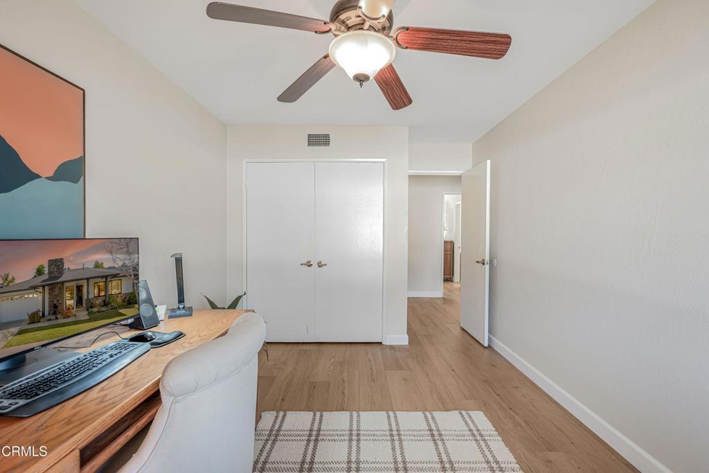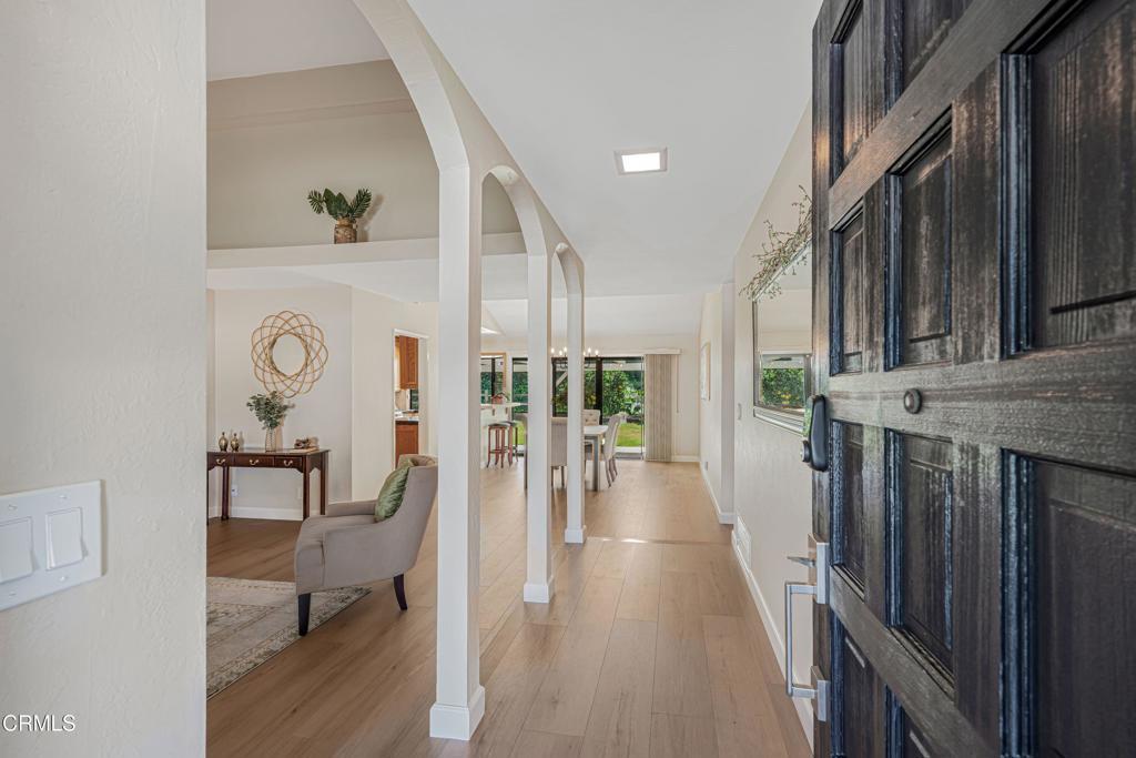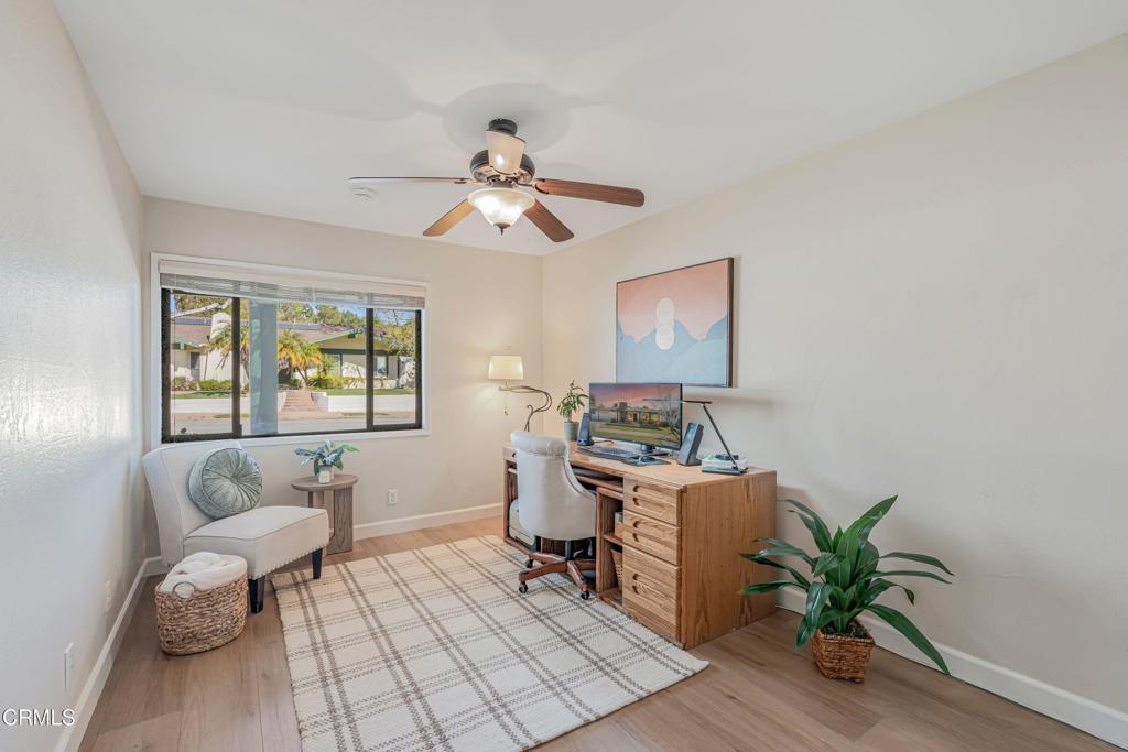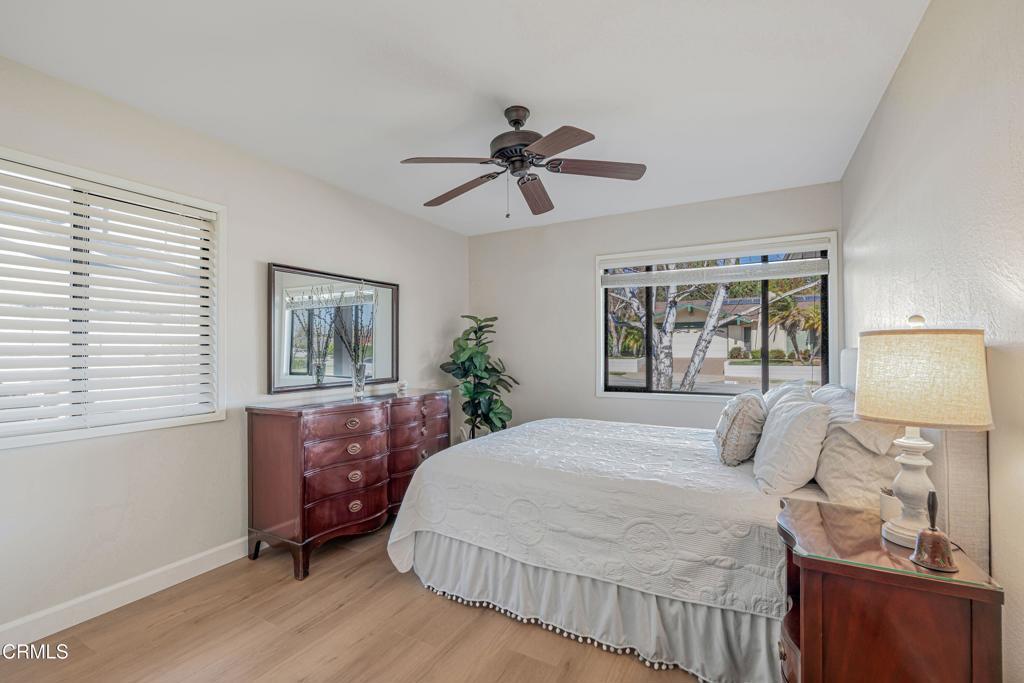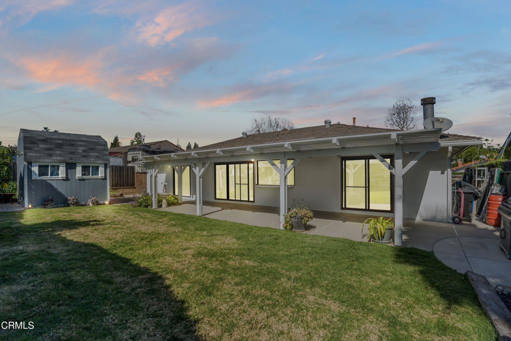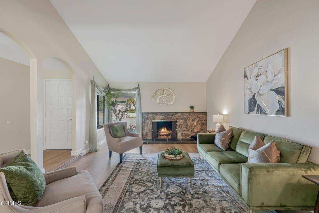 Modern Comfort Meets Classic Charm in Desirable Newbury ParkWelcome to this beautifully maintained 3 bedroom 2 bathroom home located in a highly sought-after area of Newbury Park. From the moment you arrive, you'll be impressed by the home's inviting front yard with striking curb appeal and attractive stone accents. Step inside to the spacious living room featuring vaulted ceilings, high quality laminate floors throughout and a stunning stone fireplace that creates a warm yet sophisticated atmosphere.The elegant dining area has a fantastic view of the lush backyard with easy access through a large sliding glass door. There is also a stylish tile bar that connects the kitchen and dining area making it convenient for entertaining inside and out.The kitchen is a true highlight, showcasing exquisite granite countertops, rich wooden cabinetry, stainless steel appliances and a large bay window that brings in plenty of natural light. Dual-pane windows are throughout the home.Adjacent to the kitchen, a spacious bonus room, also with sliding glass door access to the backyard, offers another charming fireplace and ample space making it ideal for family gatherings, game nights, or as a relaxing retreat or 4th bedroom.The expansive primary suite at the other end of the home features a large walk-in closet, access to the backyard through a 3rd sliding glass door, and a beautifully upgraded en-suite bathroom with a walk-in shower and dual rainwater showerhead. Two additional large bedrooms with big closets are light and comfortable and conveniently located adjacent to the 2nd full bathroom.Step outside to your own private oasis, an inviting backyard with plenty of room for outdoor activities, dining, relaxing, gardening; and easy access to a 10' x 12' TuffShed providing even more storage and endless transformation possibilities to make it your own special place. The property also features a large two car garage, with laundry hook-ups, additional cabinet space and overhead storage.This home perfectly blends comfort, style, and functionality ready for you to move in, make it your own and become part of a wonderful neighborhood.