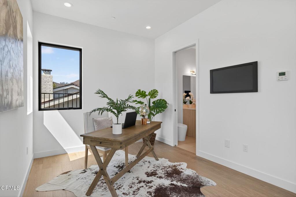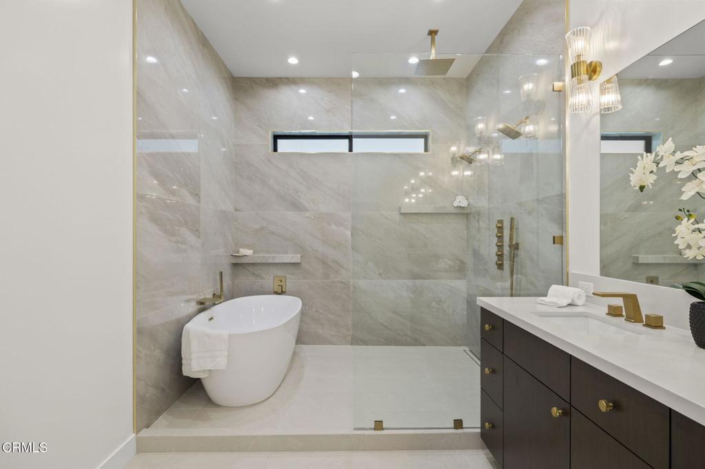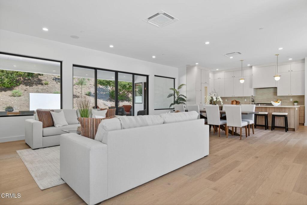 Rare opportunity to own brand-new construction in Ventura's ultra desirable Ondulando neighborhood. This stunning single-story home offers an open floor plan with white oak hardwood floors throughout, ten foot ceilings, and seamless indoor-outdoor living. The chef's kitchen features top-of-the-line stainless steel appliances, walk-in pantry, and a striking 9-foot island, opening to a spacious living room with a 74' WiFi-enabled color-changing LED fireplace. The 4-bedroom, 4-bathroom split-wing layout includes two luxurious primary suites, each with spa-inspired bathrooms and private access to the covered patio. Additional highlights include an oversized laundry/mud room with ample storage, and a two-car garage with epoxy flooring. Designed for efficiency and comfort with zoned mini-split heating and cooling, integrated solar pre-wired for battery backup, EV charging readiness, Halo 5 whole-house water filtration, and smart home features including Ring doorbell and Sonos sound system with iPad control. The private backyard is an entertainer's dream with multiple seating areas, outdoor kitchen, fire pit, and tranquil fountain--perfect for year-round California living. Don't miss out... this is THE ONE and WILL NOT LAST!