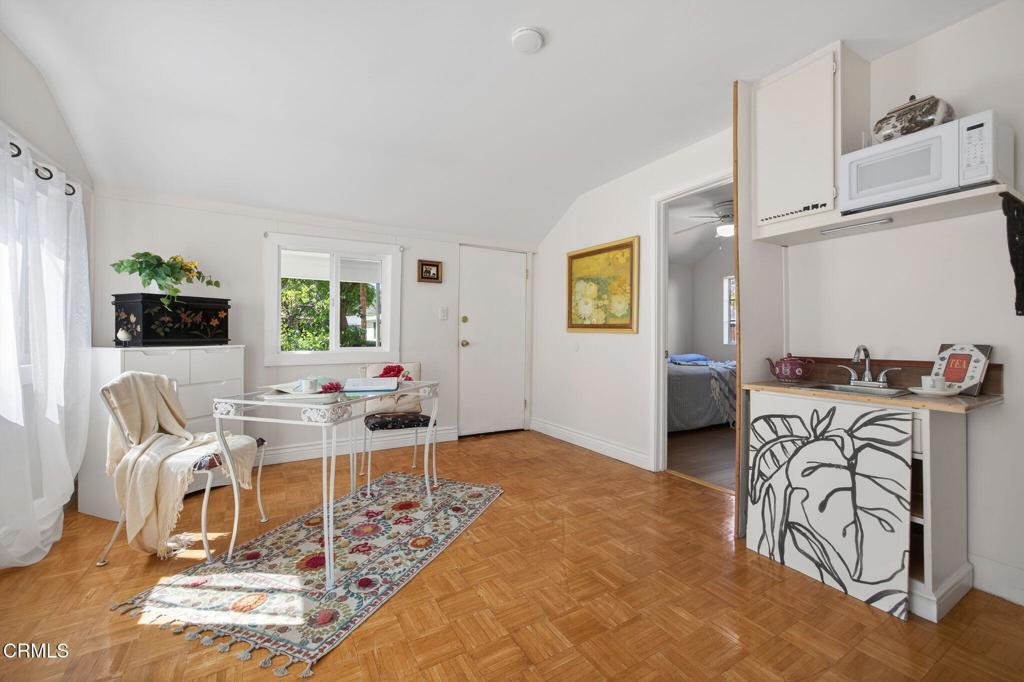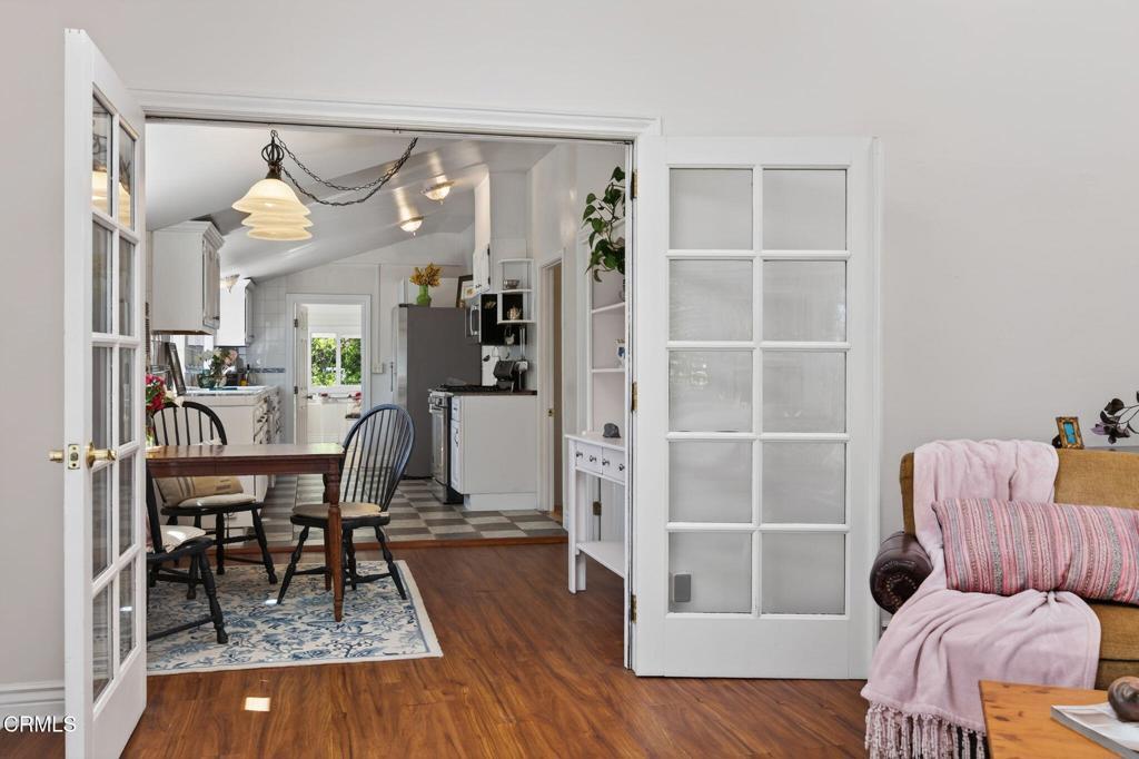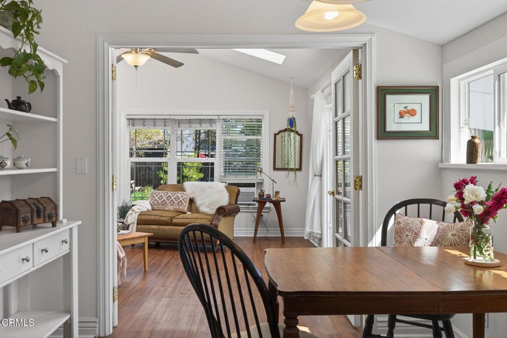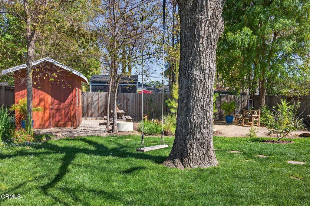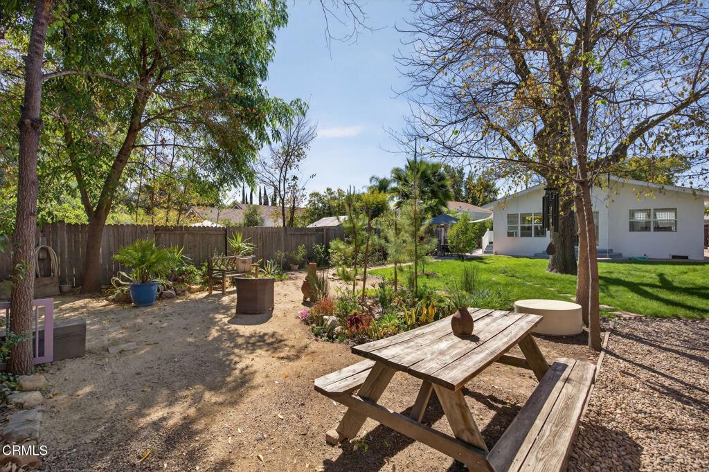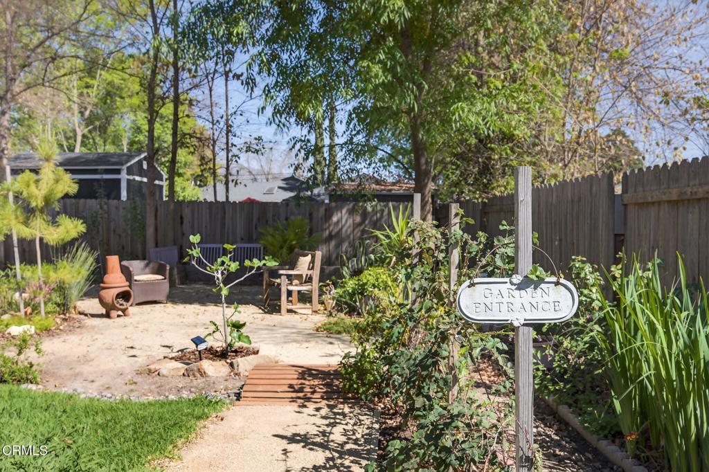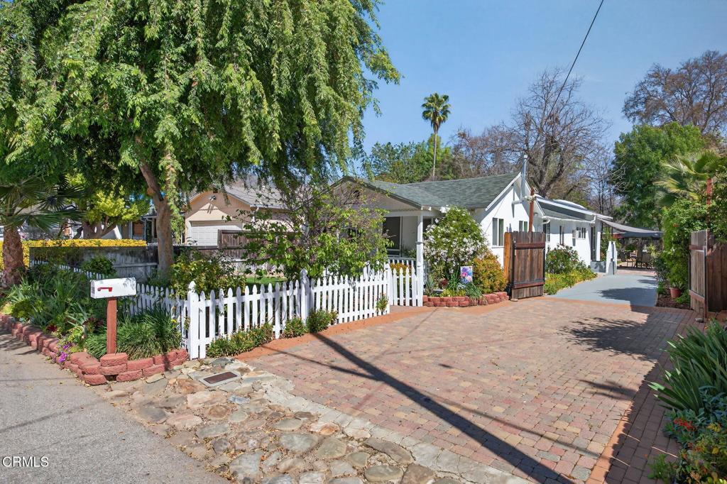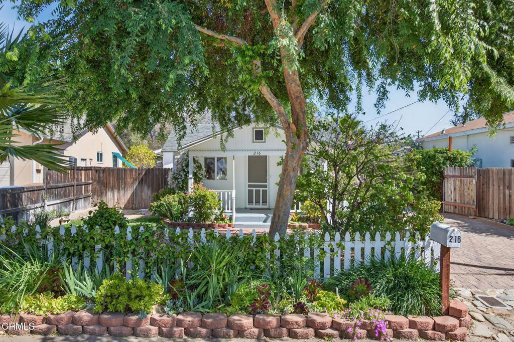 Located in the heart of downtown Ojai, this charming 1938 garden cottage captures the essence of the indoor-outdoor lifestyle that makes Ojai so special.The home offers 3 bedrooms, 2 baths and approximately 1,219 square feet of flexible living space on a beautifully landscaped 7,406 sq ft lot. An inviting front porch welcomes you into light-filled interiors, while the family room addition opens seamlessly to the gardens beyond.Step outside into a private, fully fenced garden sanctuary filled with seasonal color and fragrance purple iris, orange marigolds, flowering jasmine, fruit trees, and vegetable beds. A graceful shade tree with a swing and a seasonal water feature create a peaceful setting for outdoor living.Mountain views frame the property, and a detached workshop (120 SQ FT)offers space for creative pursuits, hobbies, or storage.Located in a quiet country neighborhood just moments from downtown Ojai's shops, restaurants, farmers market and trails.