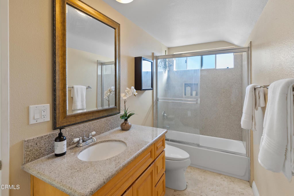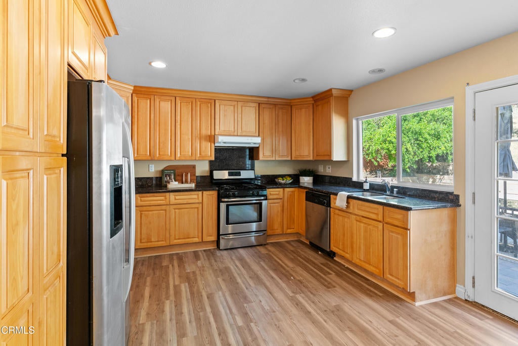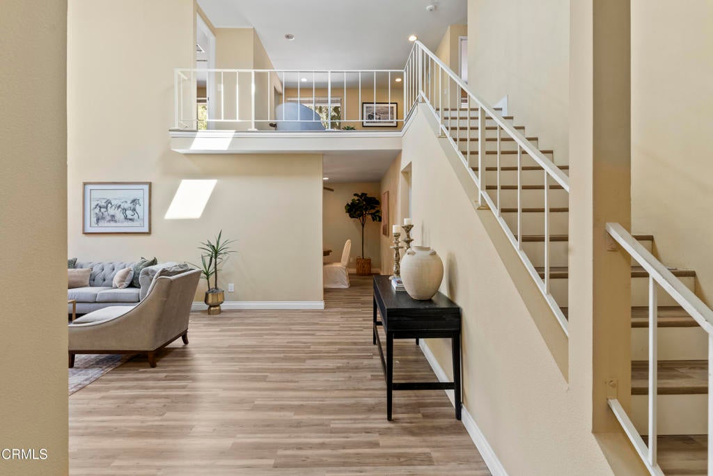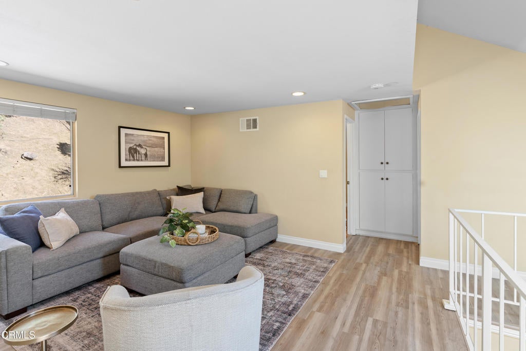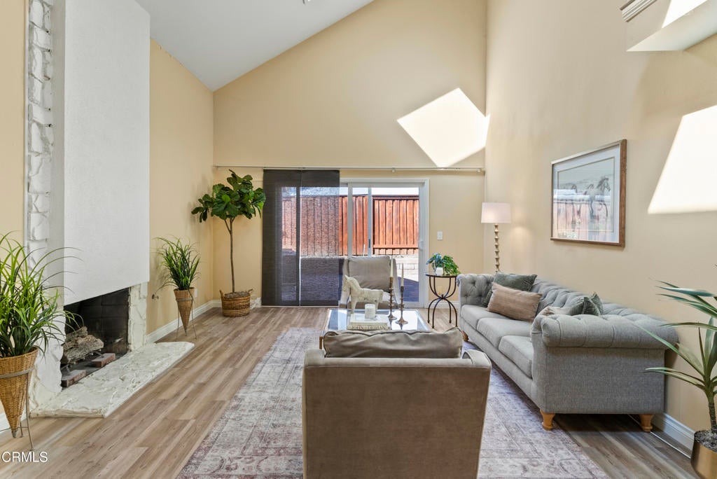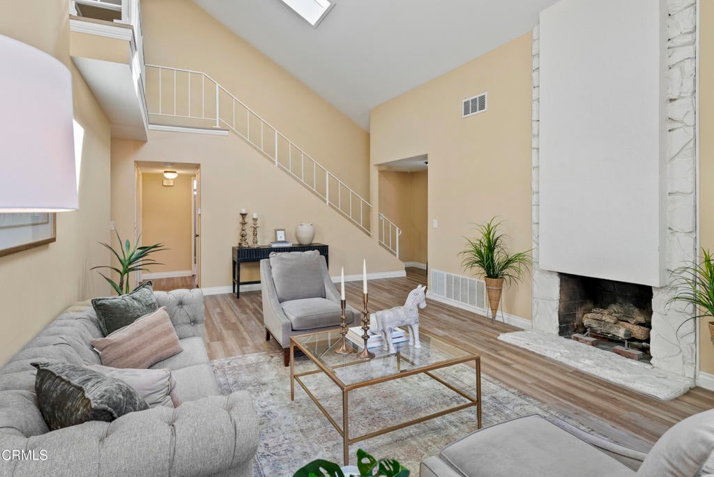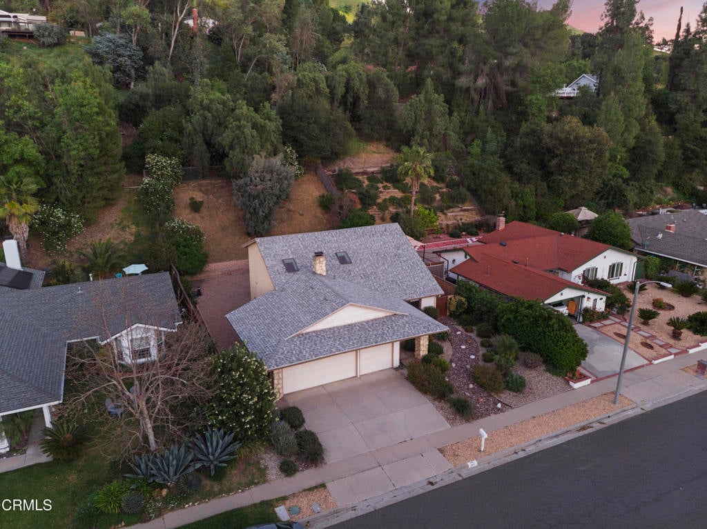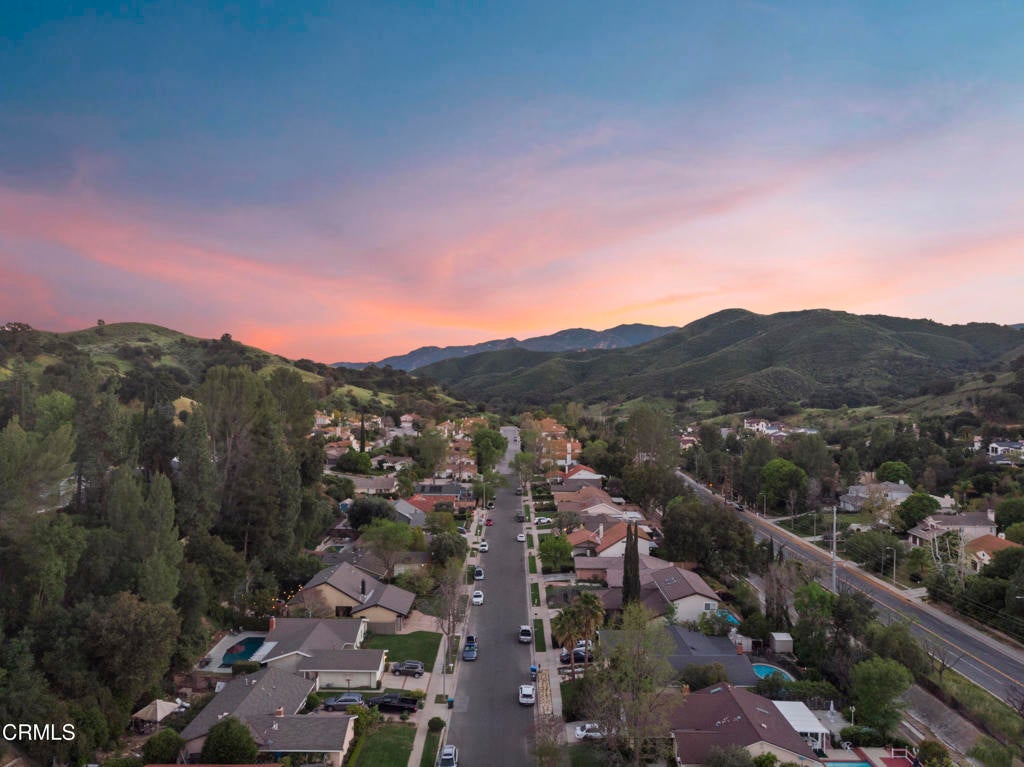 Spacious two-story home located in a quiet neighborhood of Agoura Hills, near parks, shopping, and just a short drive to the beach. Filled with natural light, the home features soaring cathedral ceilings, two skylights, and a fireplace that anchors the main living space.The open-concept kitchen offers generous cabinetry, ample storage, granite countertops, and a functional layout that flows seamlessly into the living and dining areas, ideal for both everyday living and entertaining. Sliding doors open to a private backyard with a wraparound brick patio, garden-ready side yard, and mature fruit trees, including a pomegranate tree. A natural hillside provides afternoon shade, creating a comfortable outdoor setting.Upstairs, two well-sized bedrooms are complemented by a versatile loft overlooking the living room, perfect for a home office, additional living space, or workout area. Downstairs includes two spacious bedrooms, including a primary suite with a large walk-in closet.Bathrooms feature granite finishes, and the overall layout offers flexibility for a variety of living needs.A well-designed home offering space, privacy, and convenience in a desirable location.