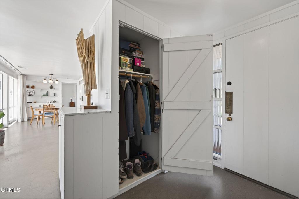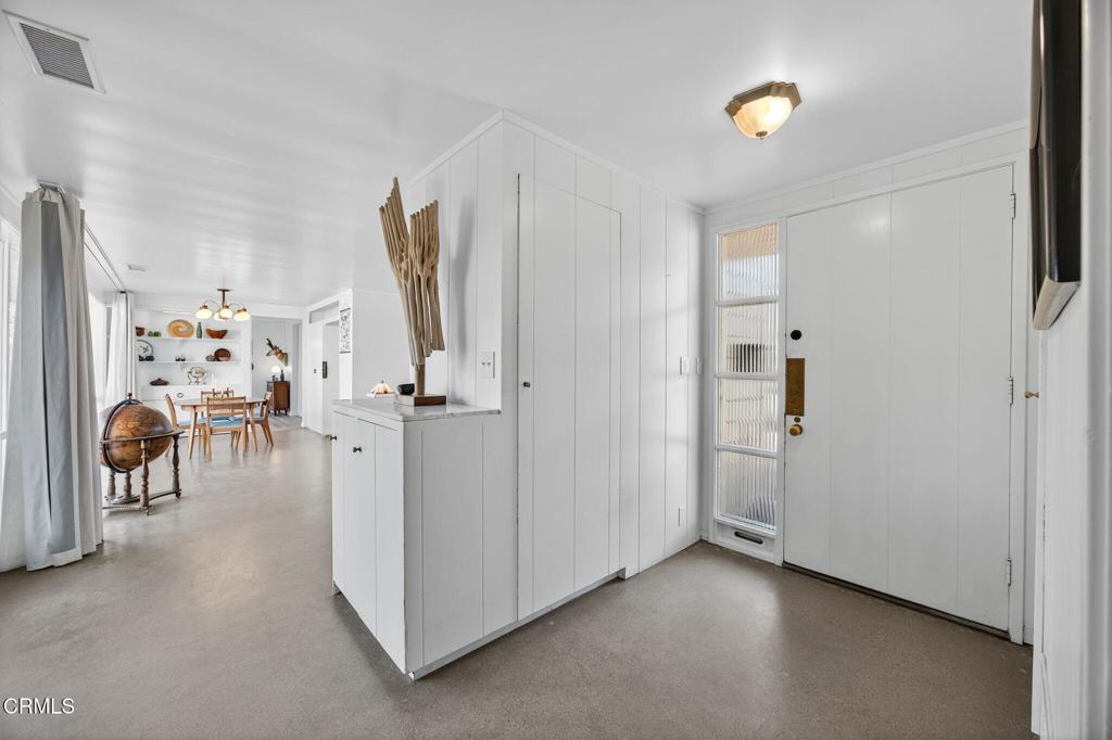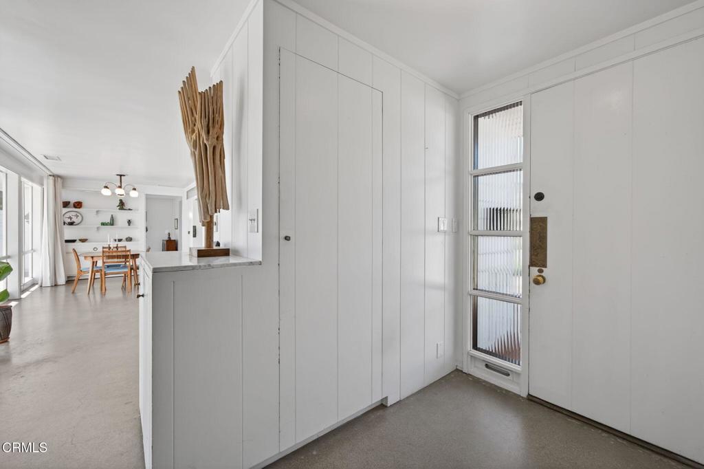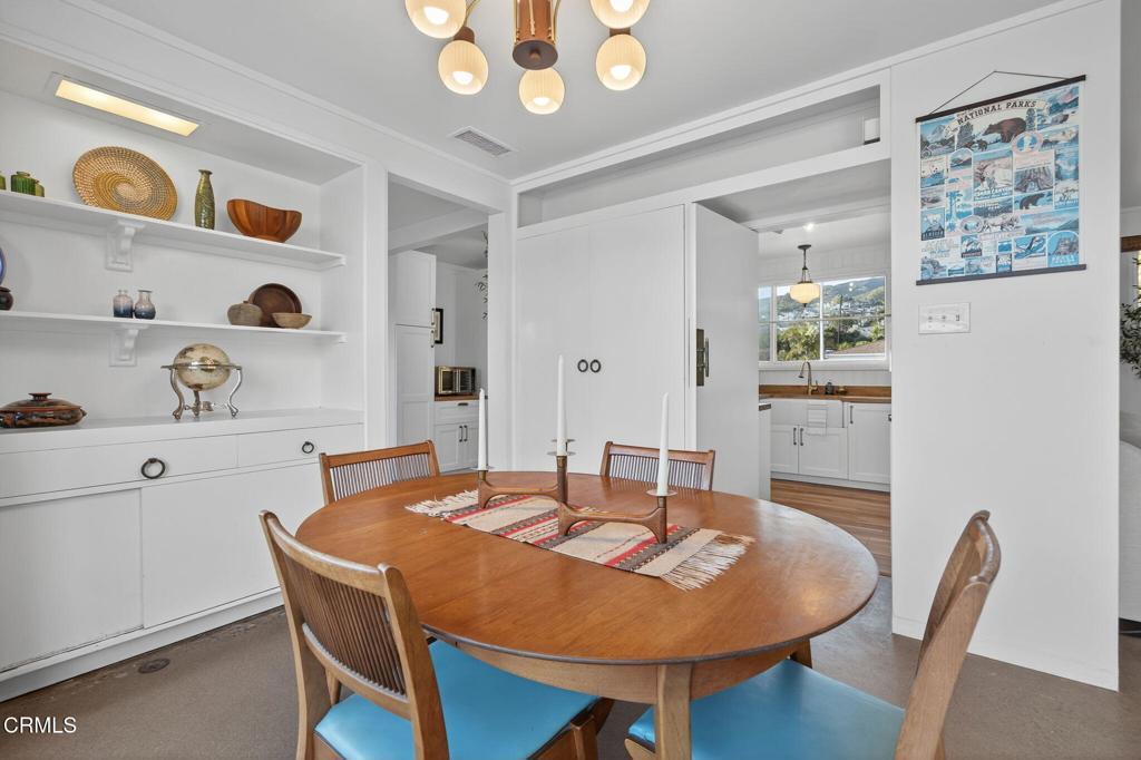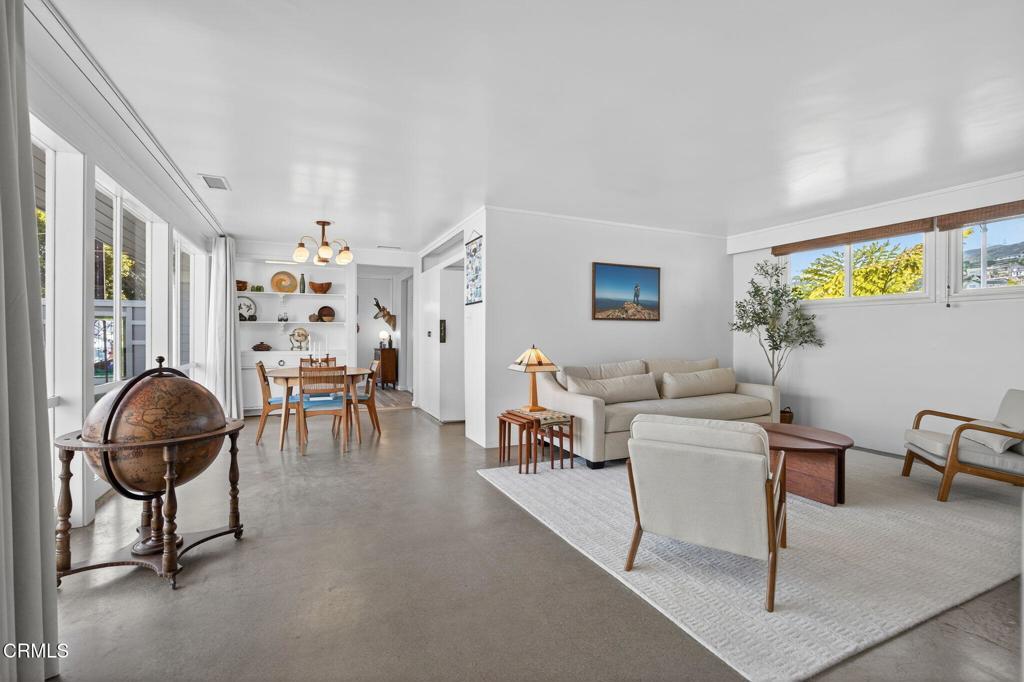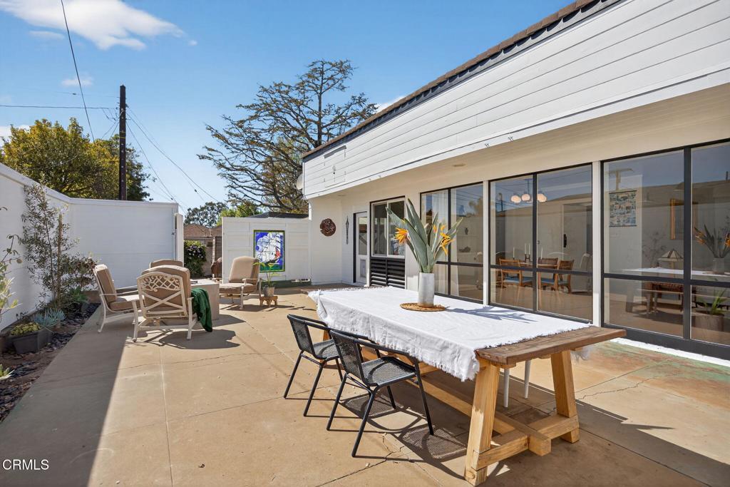 For those who appreciate architecture as art as well as home with a story...welcome to 2542 Poli. This 1948 midcentury modern residence designed by noted California architect Randolph Chalfant Head is a rare opportunity to own an authentic piece of Ventura's design history. Thoughtfully composed and true to the ideals of post-war modernism, the single-story home embodies Head's signature approach: clean horizontal lines, natural materials, and seamless indoor-outdoor living. An expansive picture window marry outdoor patio into the dining and living room spaces with natural light to warm the space. Iconic design continues with the seamless built-ins, custom shelving, and warm wood detailing showcase the skilled craftsmanship that defines the era. Magic continues into the remodeled kitchen which flows effortlessly into the dining and bonus room just off the lanai and raised garden beds. This Midcentury beauty blends chic with California living with intentional layout inside and out. Enjoy 3 bedrooms, 11/2 baths, plus the mentioned bonus room, all arranged on a single level that emphasizes simplicity, proportion, and connection to the surrounding landscape. To understand the expansive 7,405 sq ft lot, you will want to stroll in the 4 different outdoor spaces with 2 patio areas, DG garden bed area, and curated spaces for gathering or quiet reflection. A detached garage offers potential for a studio, workshop, or future ADU, while an outdoor shower with its own water heater makes rinsing off after nearby beach days both practical and indulgent. Exterior recently repainted and beautifully preserved, the home sits in Ventura's coveted Cunnane neighborhood, named for Dr. Thomas Cunnane, a beloved physician who served Ventura County beginning in 1899. This historic enclave is known for its character, charm, and proximity to the coast. Architecturally significant, quietly sophisticated, and deeply rooted in Ventura's cultural fabric, this is much more than a home.