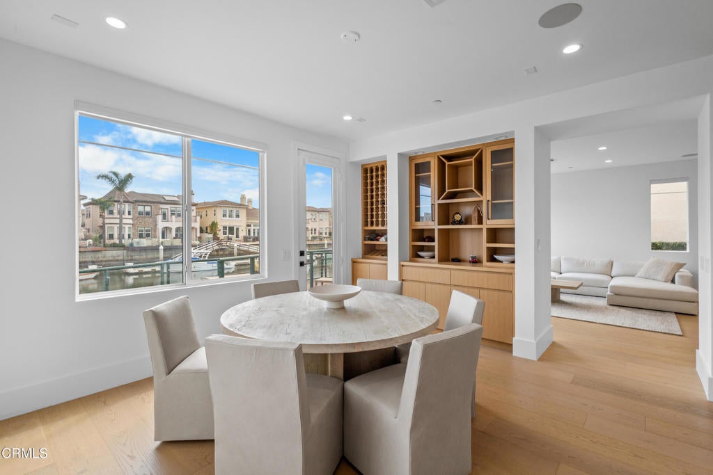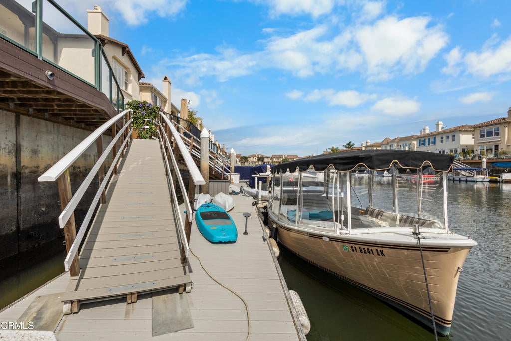 Welcome to Westport at Mandalay Bay, one of Oxnard's most desirable waterfront communities in Ventura County. This beautifully renovated marina home offers a private 35-foot boat dock easement, eastern water exposure, and exceptional privacy with no public sidewalk behind the property. Enjoy the ultimate coastal lifestyle with direct boating access to Channel Islands Harbor and close proximity to Seabridge Marina, shops, restaurants, and nearby beaches.The backyard is designed for entertaining and relaxation, featuring a cantilevered Trex deck that maximizes outdoor living space while overlooking tranquil water views. It is the perfect setting for dining al fresco, hosting gatherings, or simply enjoying the peaceful marina setting. Scenic walking and biking paths run along the waterfront, and the beach is located just one mile away.Inside, the home offers a bright, modern, and sophisticated interior with wide-plank white oak flooring, custom cabinetry, smooth wall finishes, solid core doors, and detailed base and case moldings throughout. The gourmet kitchen is equipped with premium Thermador appliances, a quartz center island, and built-in single-door refrigerator and freezer, creating an ideal space for cooking and entertaining.The home features four spacious bedrooms, each with its own en-suite bathroom, including a convenient downstairs bedroom that is closet-ready. A large upstairs loft provides flexible living space perfect for a home office, den, or media room. The primary suite serves as a private retreat with a sitting area, walk-in closet, and a private deck overlooking the channel and surrounding mountains, with occasional snow-capped peaks visible during winter months. The spa-inspired primary bathroom includes a wet room with soaking tub, rain shower, handheld sprayer, and elegant black quartz and porcelain finishes.Additional highlights include a direct-access garage with epoxy flooring and built-in cabinetry, providing excellent storage for all your coastal lifestyle needs. Located just minutes from Seabridge shopping and dining, Hollywood Beach, Silver Strand Beach, and Channel Islands Harbor, this exceptional property offers a rare opportunity to own a luxury waterfront home with a private boat dock in Westport.