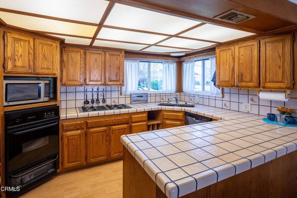 This special home has loads of curb appeal and is just as nice inside. Located in East Simi Valley, it has a generously sized 8,000 square foot lot. Plenty of space to park with an extra large driveway that extends along the side of the house gives you room to park an enormous RV. The living room is light and bright and looks out onto the patio. The kitchen has lovely oak cabinets, wrap-around counters with a breakfast bar. There is a nice sized dining room between the kitchen and bathroom. The primary bedroom has its own bath with a unique tile shower/tub. This home is move-in ready. Handsome laminate flooring throughout and the interior has been freshly painted. Other nice improvements are vinyl dual-pane windows, whole house fan, newer HVAC system, and leased solar panels. Flat screen tv in living room is also included.
