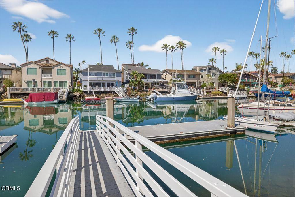 Set along one of the most desirable streets and channels within the Ventura Keys, this west-facing 'Keys Island' waterfront residence offers a rare expression of coastal California living. From sunrise to sunset, the home is immersed in the natural beauty, sights, and sounds of its surroundings. Gentle channel waters reflect shifting light throughout the day, while ocean breezes create an atmosphere of tranquility, peace, and joy. Thoughtfully designed for both intimate living and effortless entertaining, the interiors unfold with warmth and intention. A fireside kitchen with an inviting seating area becomes the heart of the home--where conversations linger, and meals are prepared--while the adjacent dining and living spaces open seamlessly to the waterfront, blurring the line between indoors and out. Step out to the waterfront deck for al fresco dining along the channel, and when the evenings cool down, enjoy a second fireplace in the living room for a warm and relaxing ending to your day. Upstairs, the stunning primary suite serves as a peaceful retreat, complete with a private deck perfectly positioned to view the captivating wildlife and capture breathtaking sunsets. The expansive great room offers exceptional flexibility--ideal as a fifth bedroom, media room, game room, music lounge, or private fitness space--tailored to fit your lifestyle. The private dock extends your living space onto the water, accommodating boats, kayaks, or electric Duffies for effortless cruising through the channels and over to the Ventura Harbor. During the holidays, enjoy the views of decorated waterfront homes as well as boats participating in the Parade of lights. This close-knit enclave embodies the true sense of community for young and old alike. And this stunning home is an exceptional offering defined by its unparalleled setting, lifestyle, and close proximity to all this beautiful coastal community has to offer!