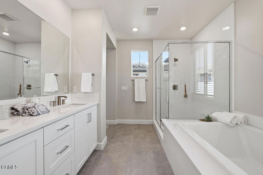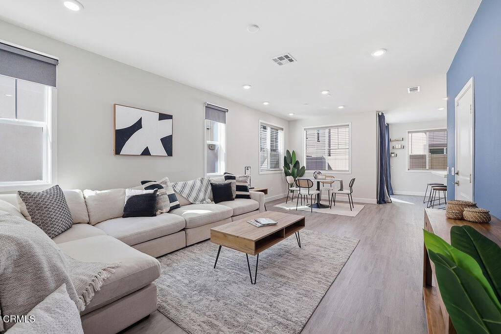 Built in 2022, this move in ready Sycamore Grove home in Central Simi Valley offers modern living with PAID OFF SOLAR, premium upgrades, and an assumable VA loan at 4.625%.Additional features include a whole house water softener, reverse osmosis system with connected ice line, tankless water heater, EV ready outlet, smart home features, and energy efficient design throughout.Inside, a bright open concept layout features brand new luxury vinyl plank flooring, 51/2 inch baseboards, and abundant natural light, creating a clean and elevated feel throughout.The kitchen is a true showstopper with soft close cabinetry, high end GE Monogram appliances, built in 6 burner cooktop, counter depth refrigerator, and a striking blue tile backsplash that adds a custom designer touch.All bedrooms are located upstairs with high end stain resistant carpet in near perfect condition. The secondary bedrooms are generously sized, ideal for family, guests, or a home office. The upstairs hall bath includes dual sinks, while the primary suite offers a spa like retreat with tile finishes, walk in shower, and large soaking tub.The private backyard is finished with pavers and turf, creating a low maintenance outdoor space perfect for relaxing or entertaining.Residents enjoy resort style amenities including a pool, private gated park, shaded playground, bocce court, community garden with gated picnic area, three BBQ areas, and two fire pits, all within a beautifully maintained community with low HOA dues of just $145 per month.The location is exceptional with a direct gated walking path to Trader Joe's, Target, Starbucks, 85C Bakery, HomeGoods, and more, plus convenient access to the 118 Freeway.Newer construction, paid off solar, premium upgrades, walkable convenience, and an assumable VA loan. Opportunities like this are rarely available in Central Simi Valley.'
